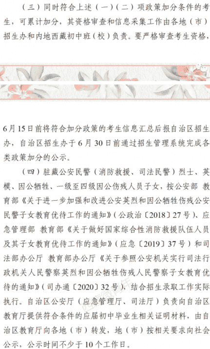 2021年西藏自治区高中阶段学校招生规定发布,下面是具体政策加分情况,供参考。