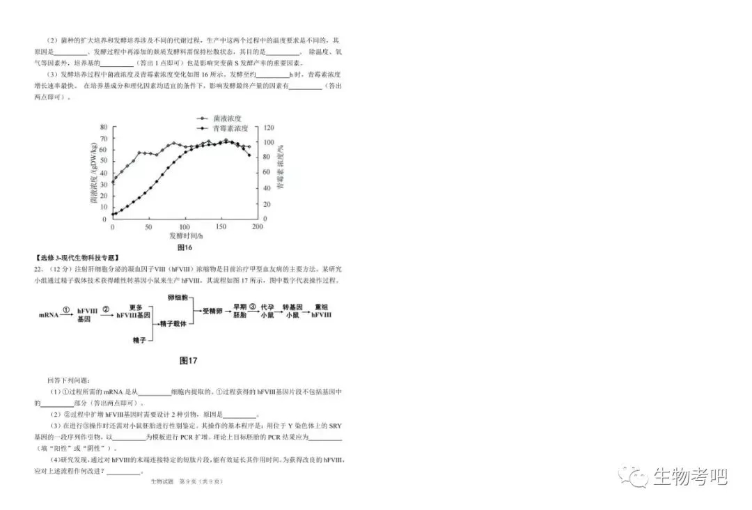 (3)75(50-75h之间均可)(1分) 菌液浓度、 菌体合成青霉素的能力(其它合理答案也可得分)