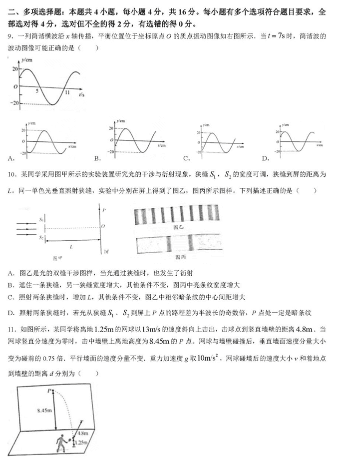 2022年山东高考物理试卷答案