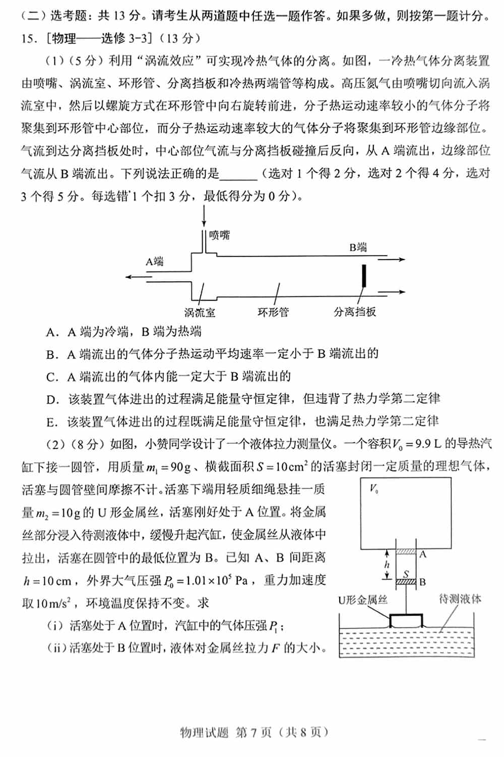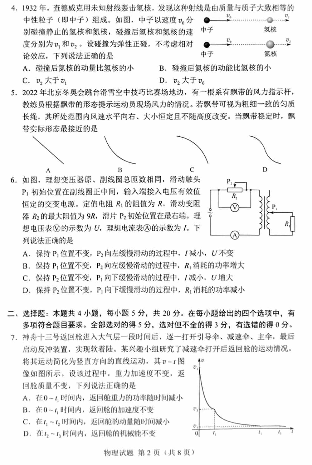 2022年湖南高考物理试卷真题试卷