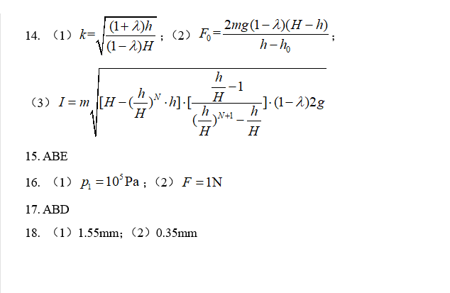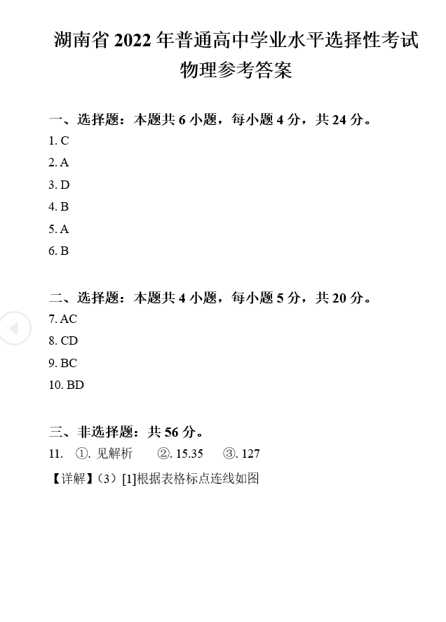 2022年湖南高考物理真题答案解析