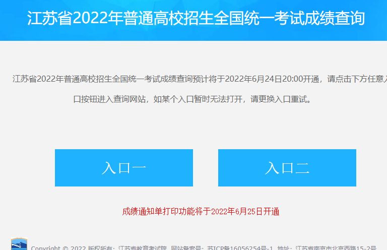江苏2022高考查分时间为6月24日20:00 查分网址:https://gkcx.jseea.cn/