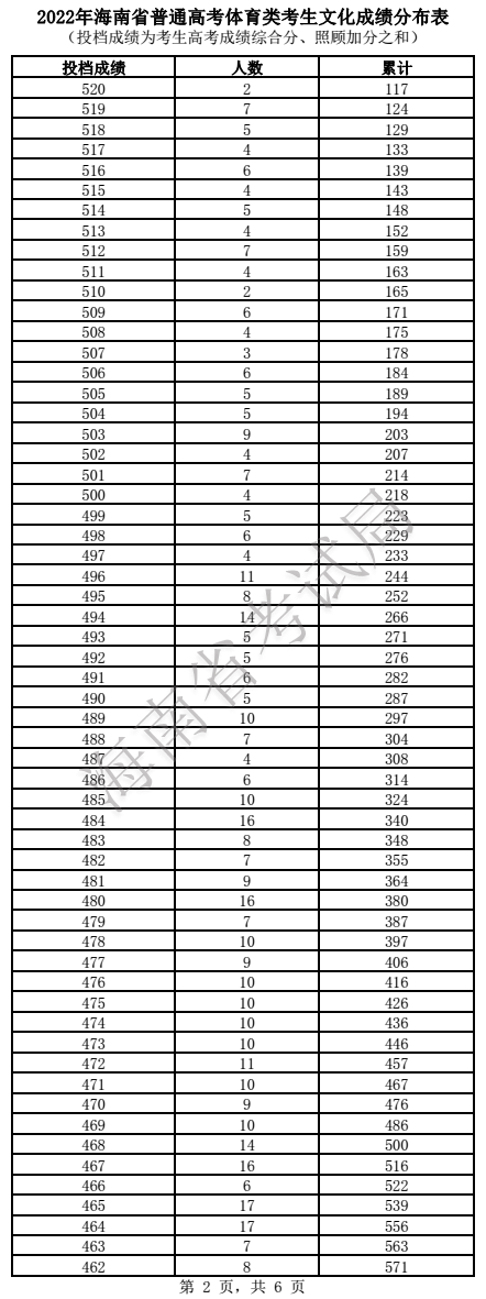 2022海南高考各批次录取分数线已发布,其中同学们最关心的是2022年海南高考体育类成绩一分一段统计、分段位次排名等相关信息,本文将为为大家整理2022年海南高考体育类成绩一分一段表统计情况,供考生查询参考。