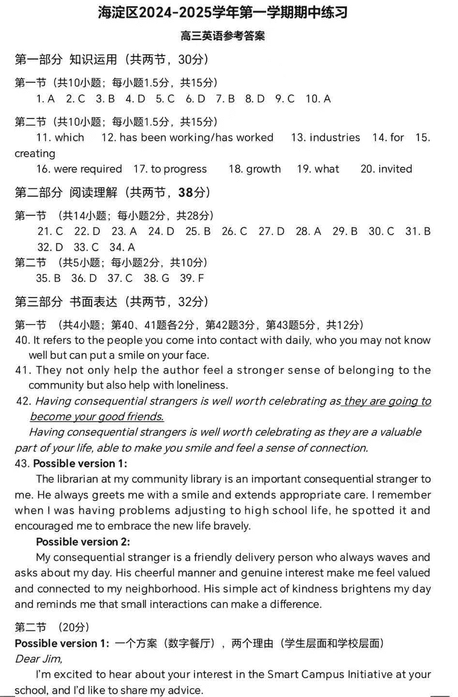 北京海淀区2024-2025学年高三上学期期中英语考试已于近日开考,为方便考生考后及时查看考试情况,查漏补缺、弥补不足,本文整理了试题答案解析相关信息!