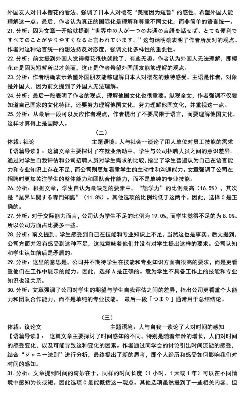 贵阳一中2025届高考适应性月考(三)日语试题及答案