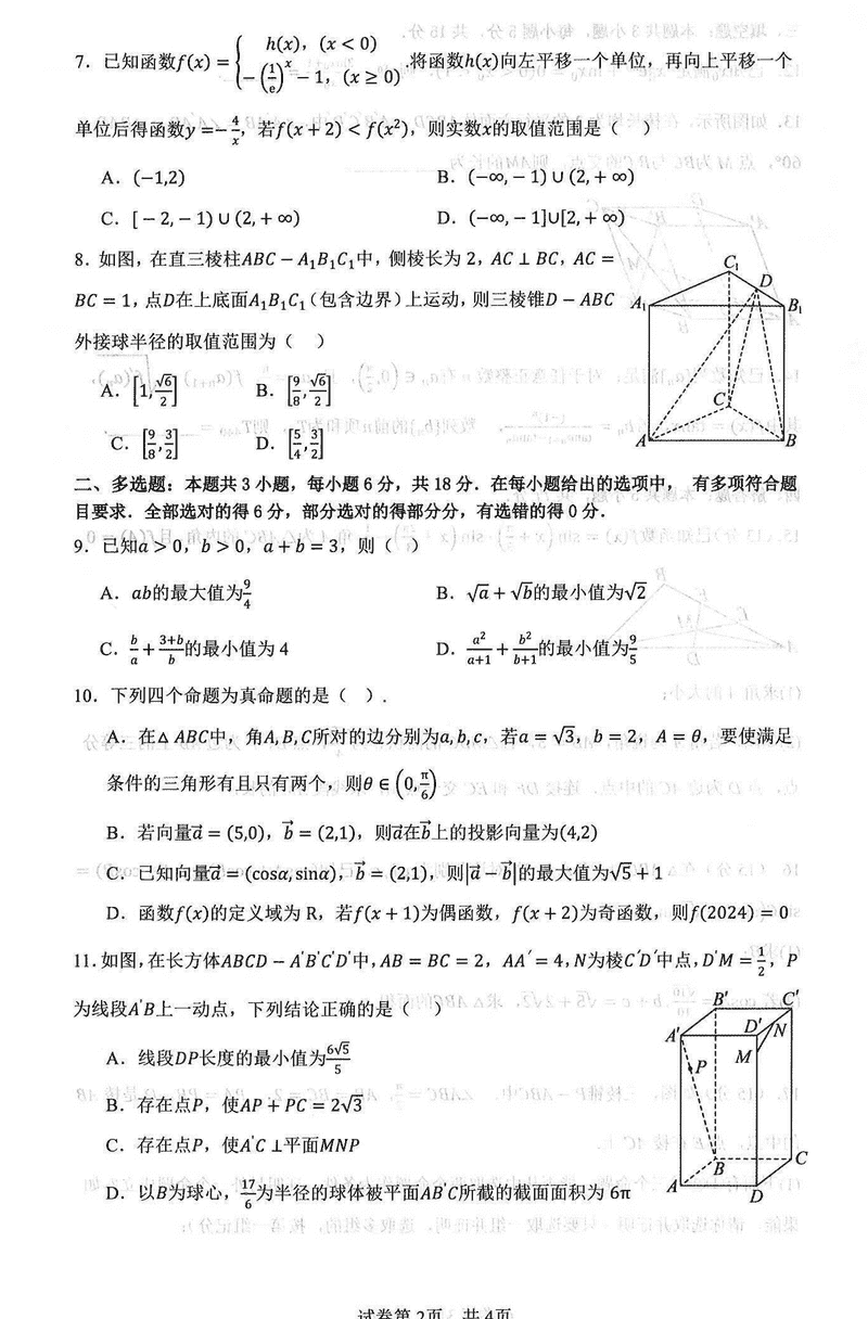 2025届东北三省一区名校联盟高三11月第一次质检数学试题及答案