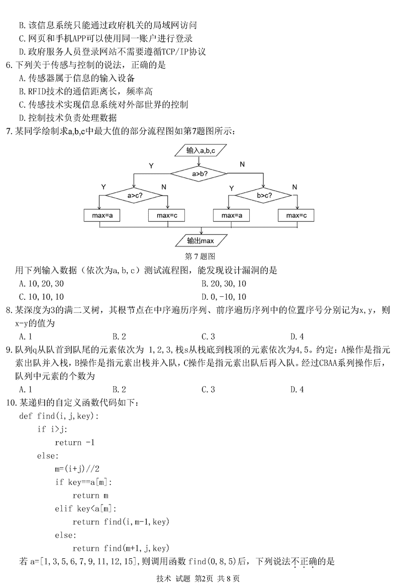 浙江精诚联盟2024学年12月高三上联考技术试题及答案