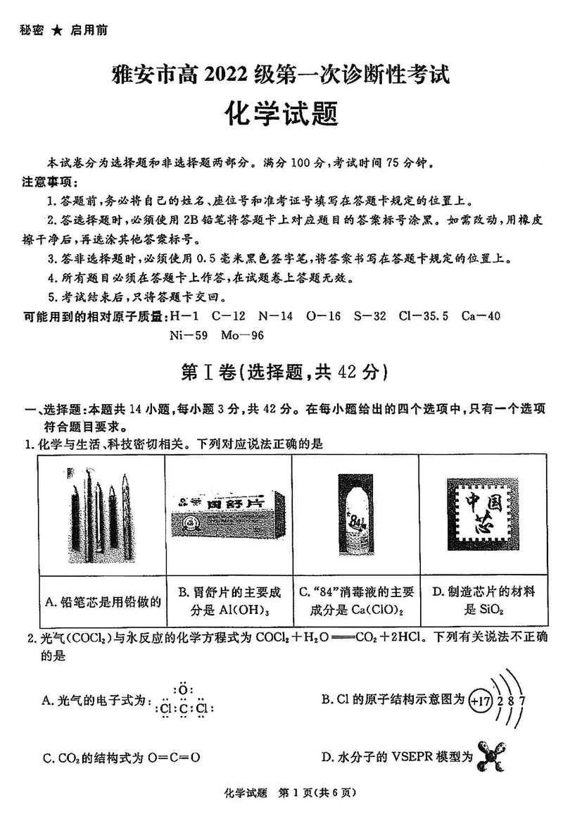 四川九市一诊2025届高三12月第一次诊断化学考试已于近日开考,为方便考生考后及时查看考试情况,查漏补缺、弥补不足,本文整理了试题答案解析相关信息!