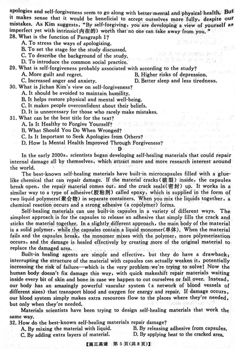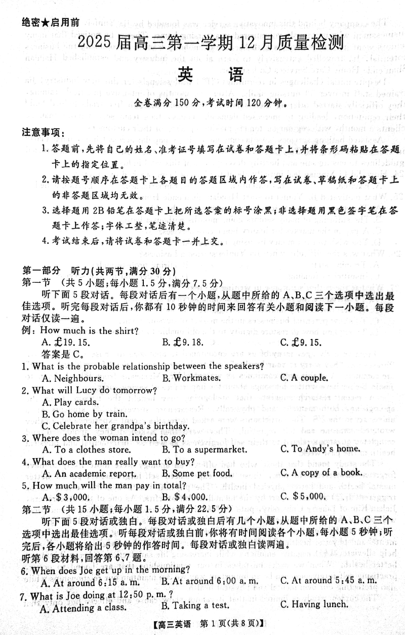 河南省金科大联考2025届高三12月联考英语试题及答案