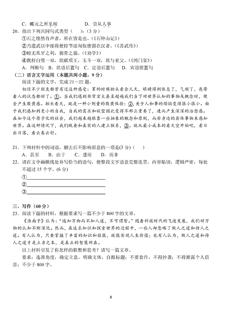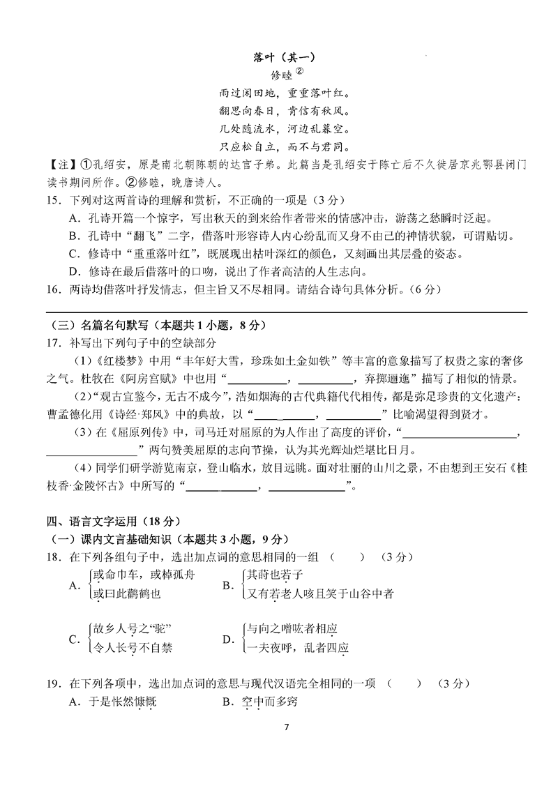 湖北 语文试题
