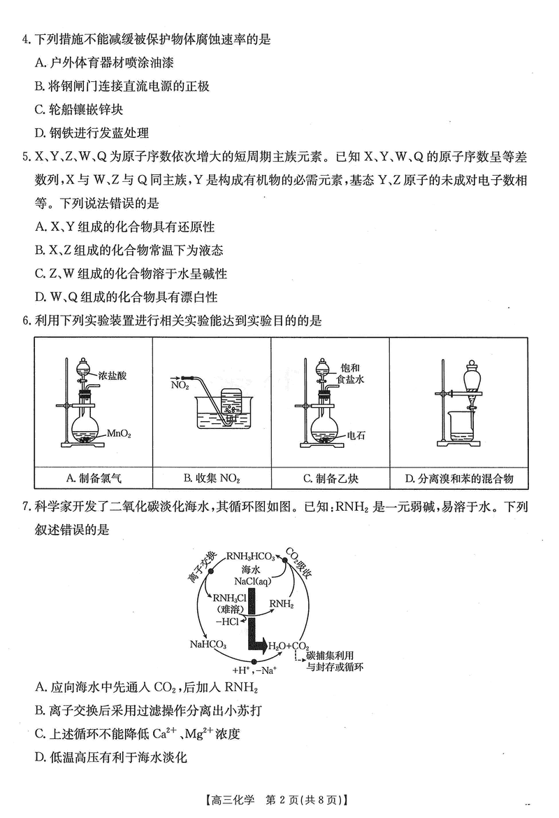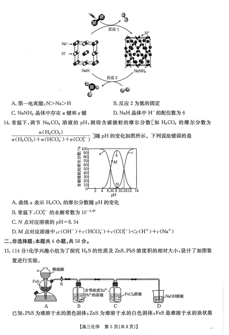甘肃武威2025届高三上学期1月期末联考化学试题及答案