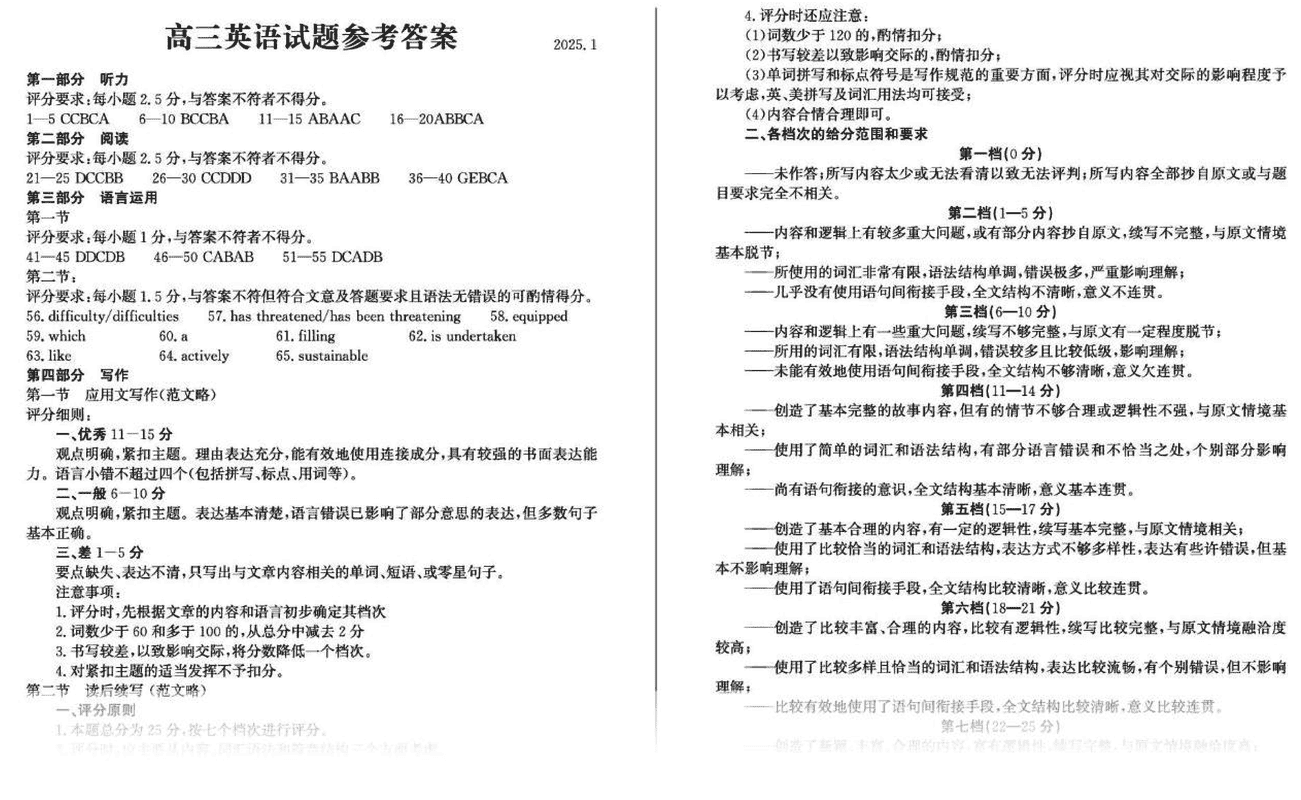 山东滨州2025年高三上学期1月期末英语考试已于近日开考,为方便考生考后及时查看考试情况,查漏补缺、弥补不足,本文整理了试题答案解析相关信息!