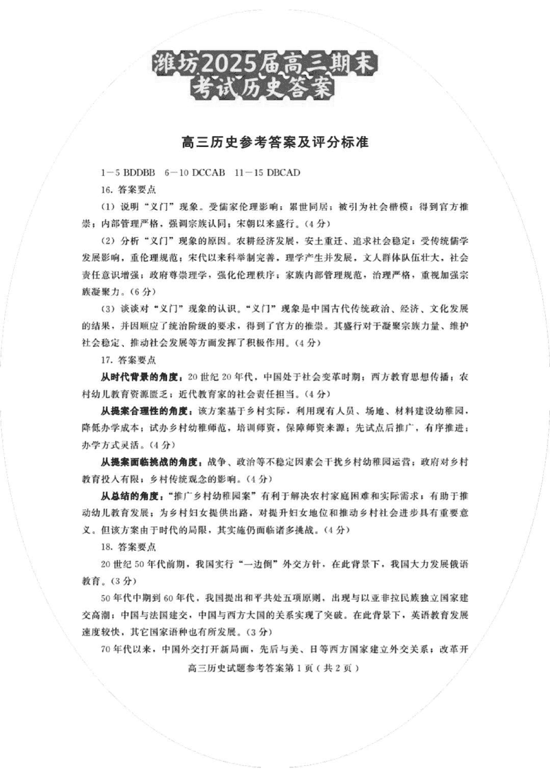 山东潍坊市、临沂市2025届高三上学期期末历史考试已于近日开考,为方便考生考后及时查看考试情况,查漏补缺、弥补不足,本文整理了试题答案解析相关信息!