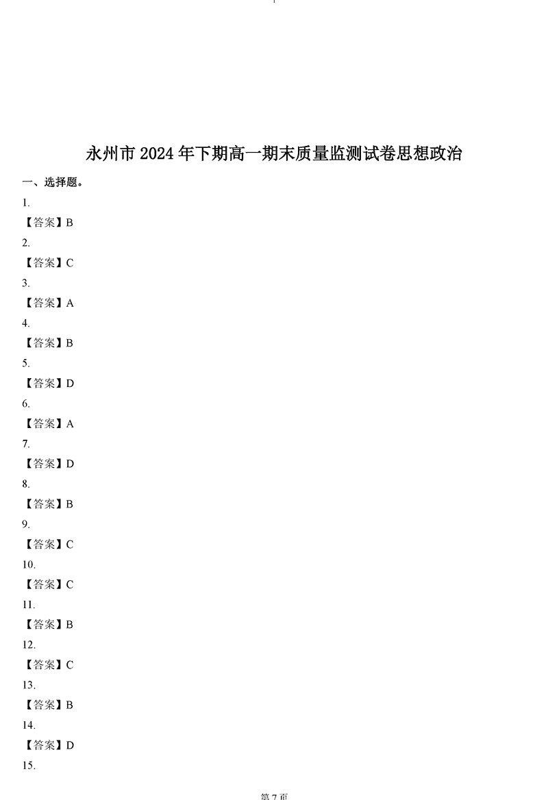湖南永州2024-2025学年高一上期末质量监测政治试题及答案 时间:2025-01-27 湖南 高中政治 湖南省永州市2024-2025学年高一上学期期末质量监测政治考试已于近日开考,为方便考生考后及时查看考试情况,查漏补缺、弥补不足,本文整理了试题答案解析相关信息! 政治试题及答案解析