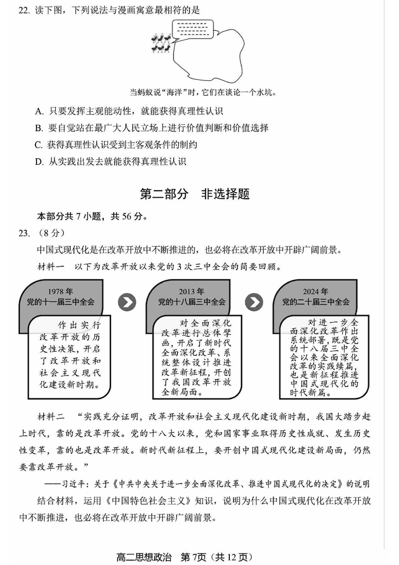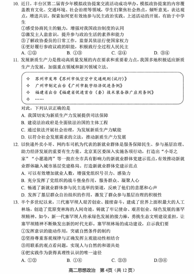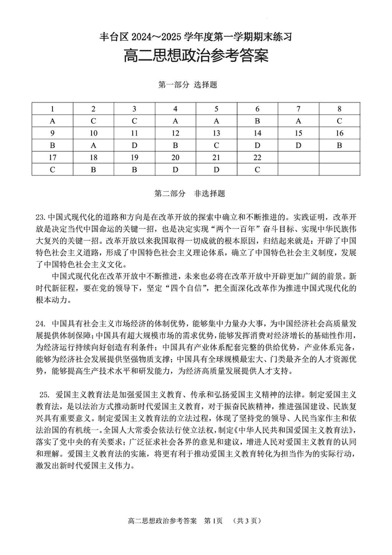 北京市丰台区2024-2025学年高二上学期期末政治试题及答案 时间:2025-01-27 北京 高中政治 北京市丰台区2024-2025学年高二上学期期末政治考试已于近日开考,为方便考生考后及时查看考试情况,查漏补缺、弥补不足,本文整理了试题答案解析相关信息! 政治试题及答案解析