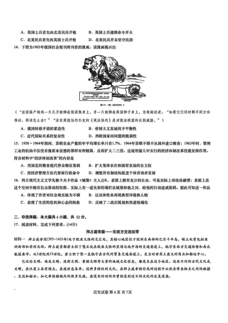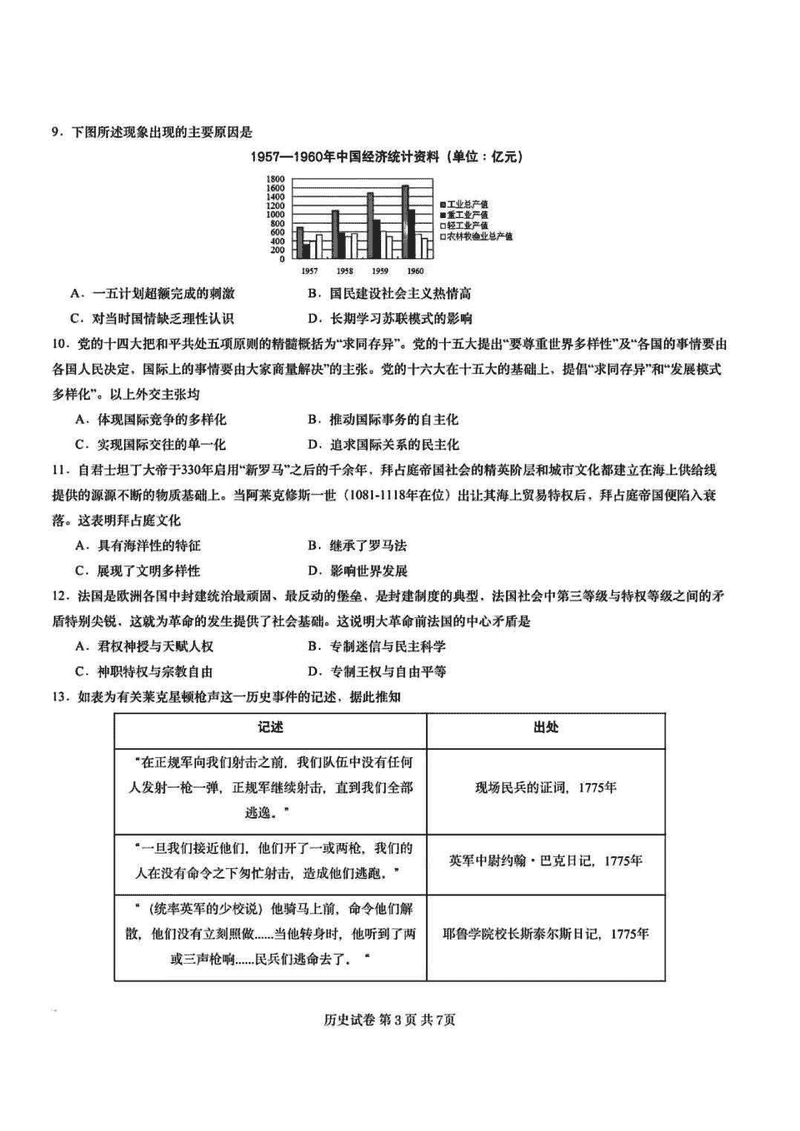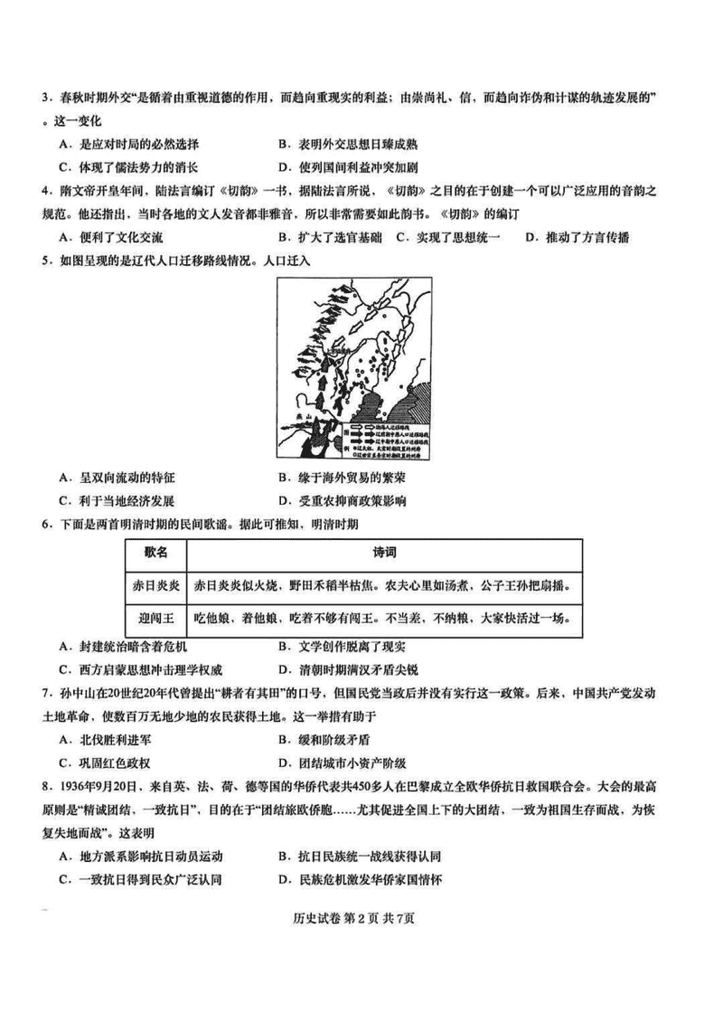 2025届湖南长郡二十校联盟高三上学期第二次预热历史试题及答案