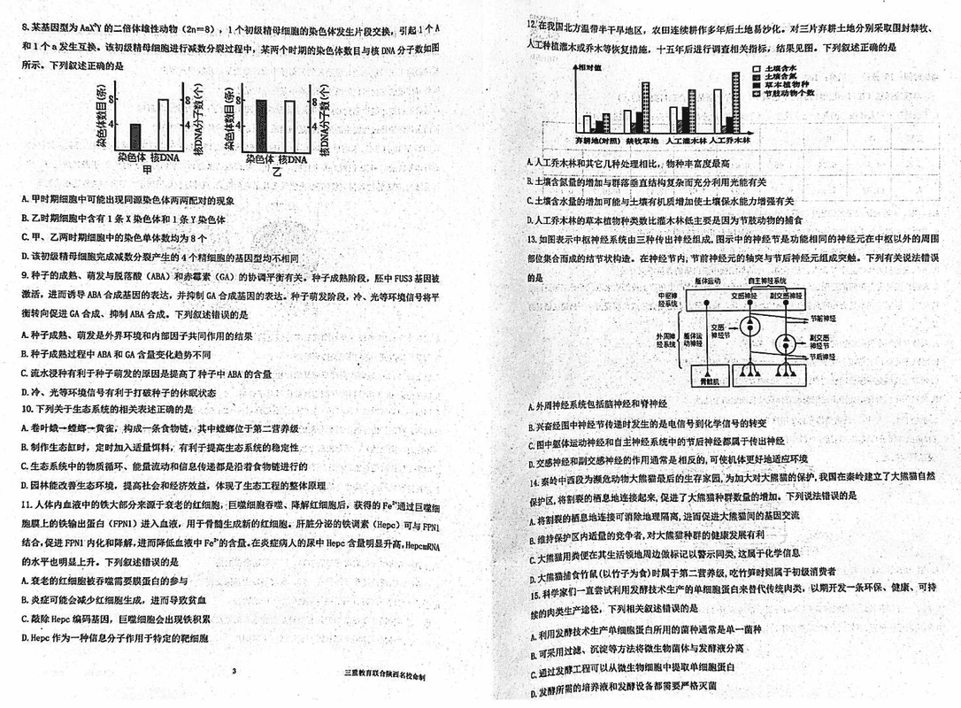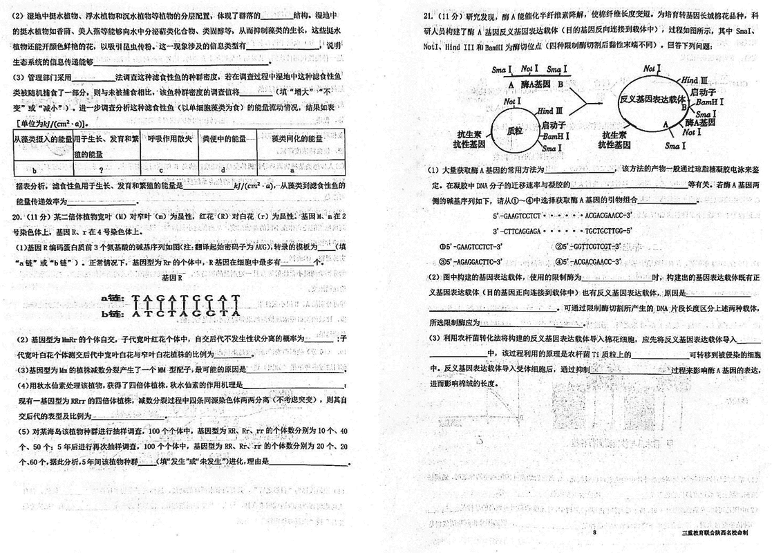陕西省三重教育2025届高考预测卷(二)生物考试已于近日开考,为方便考生考后及时查看考试情况,查漏补缺、弥补不足,本文整理了试题答案解析相关信息!