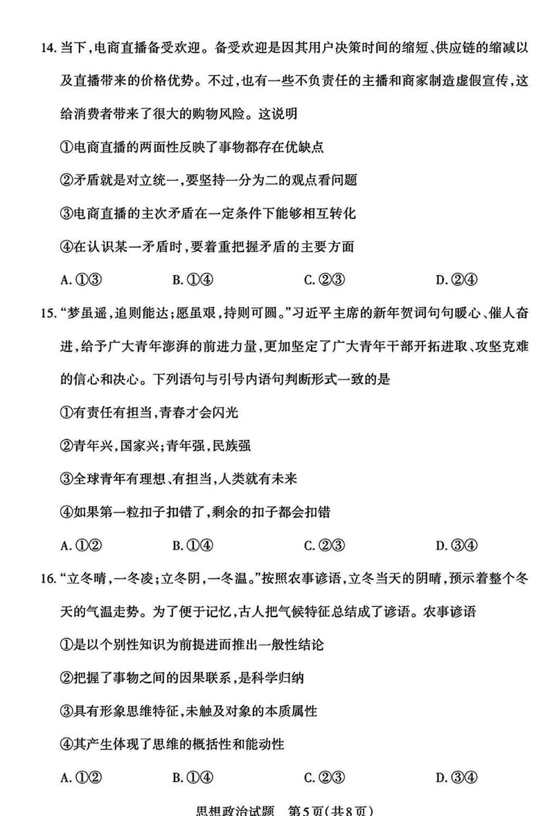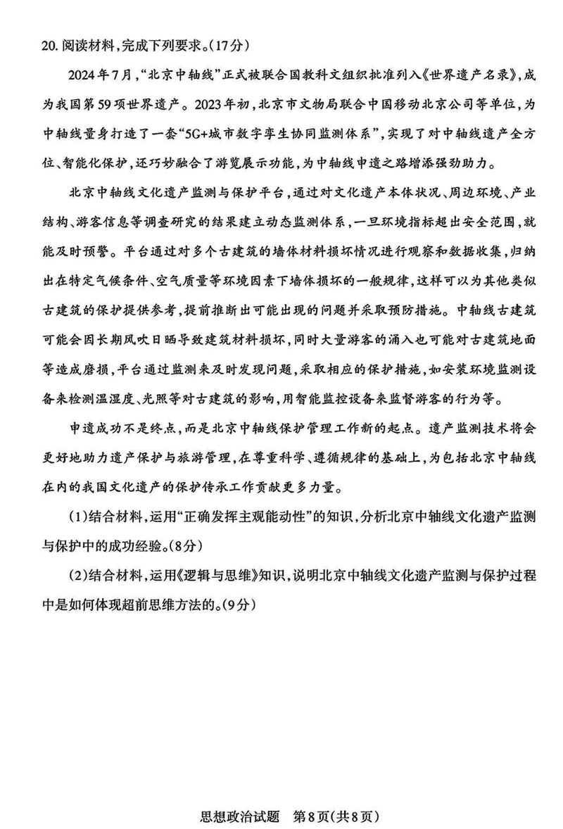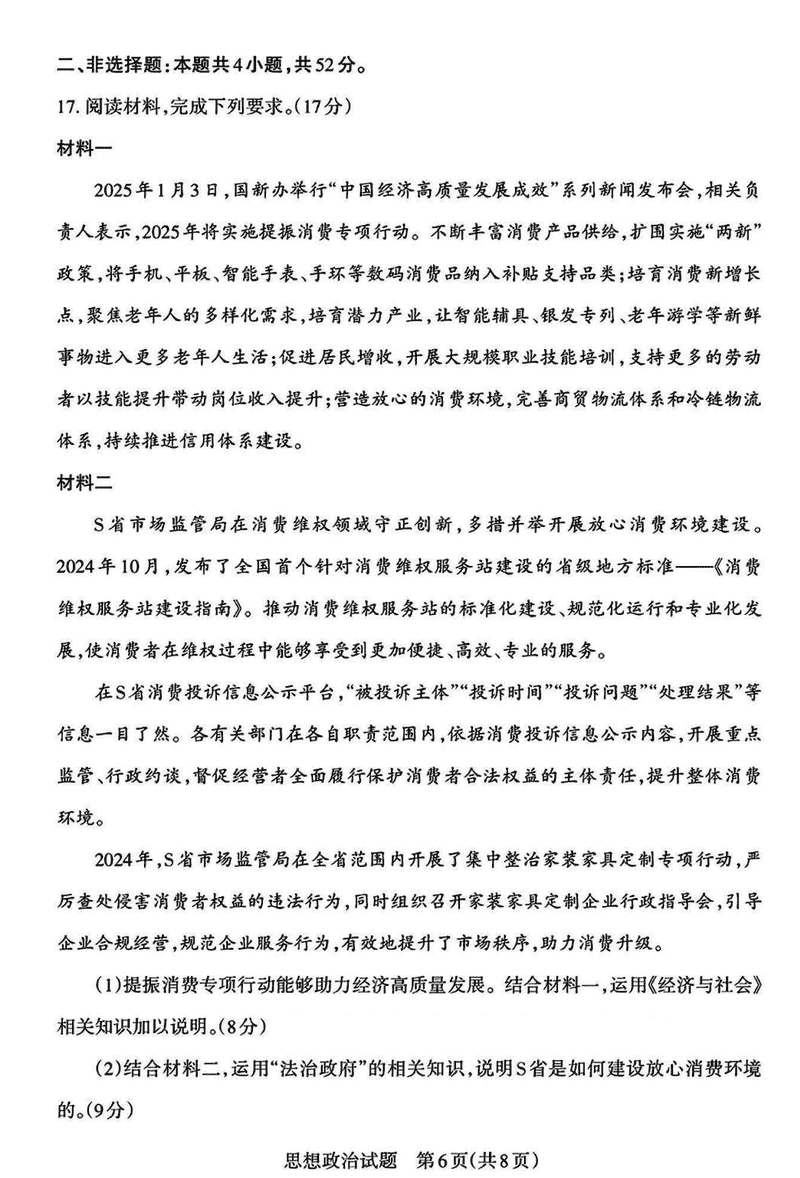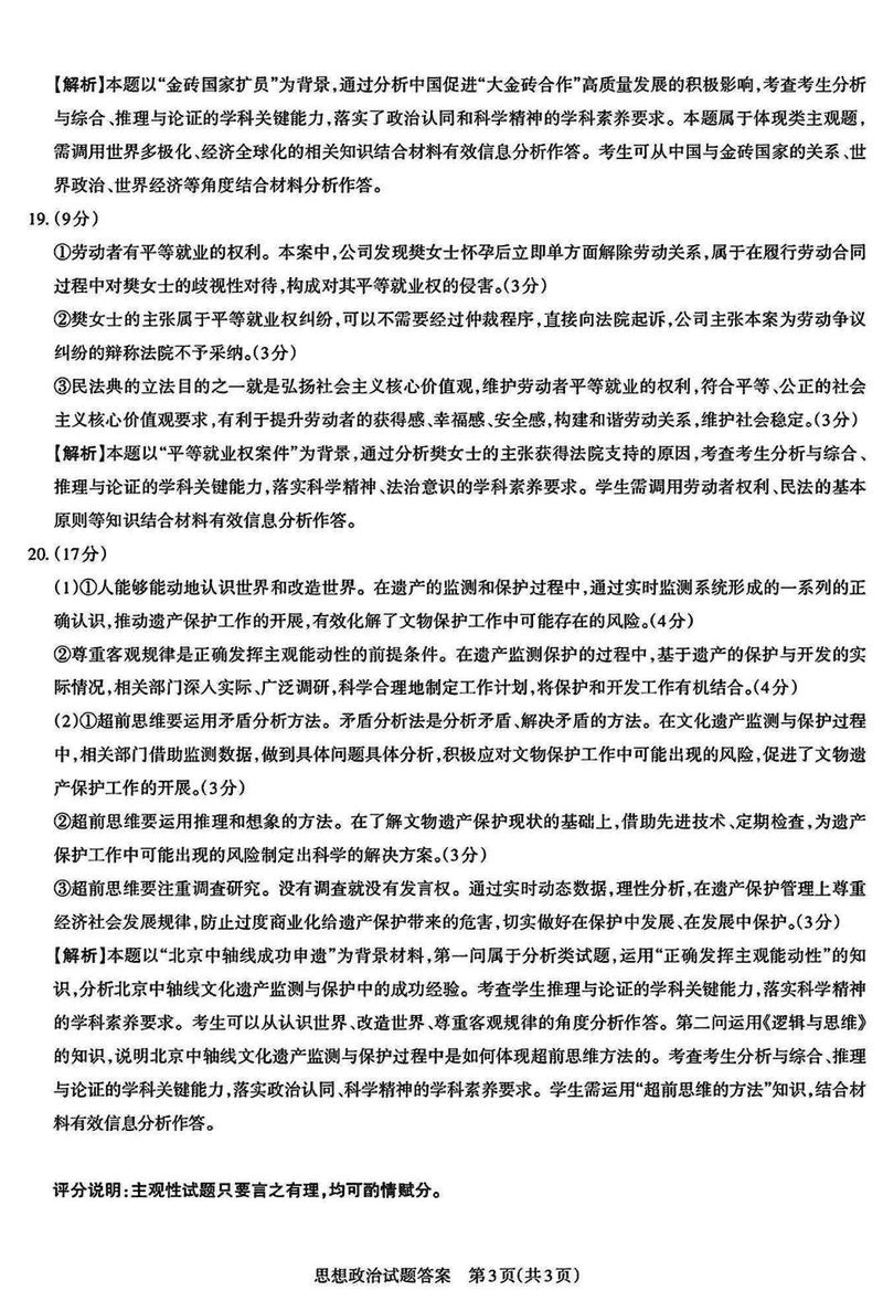 山西一模2025届高三下考前适应性测试启航卷政治试题及答案