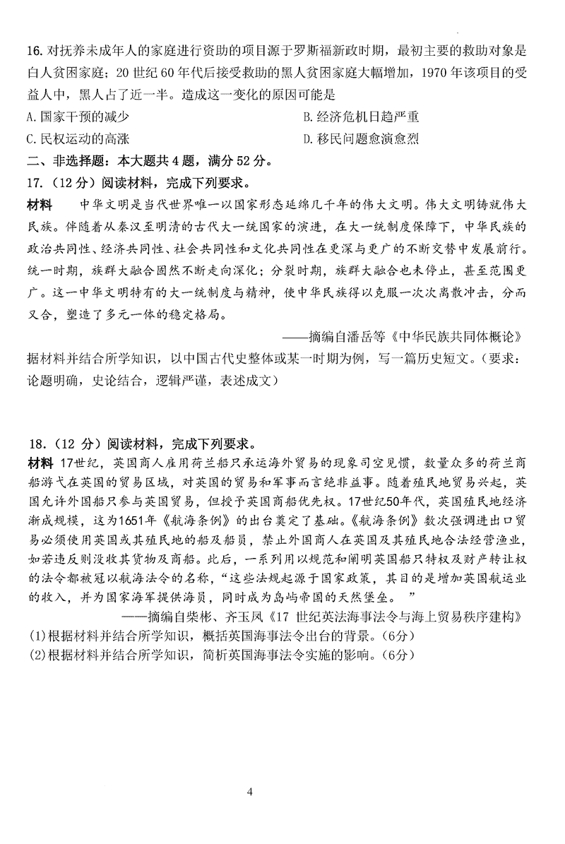 历史试题及答案解析