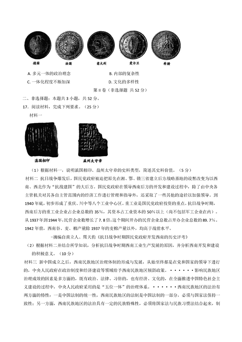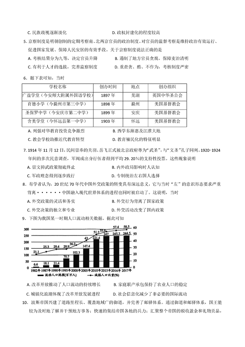安徽 文综试题