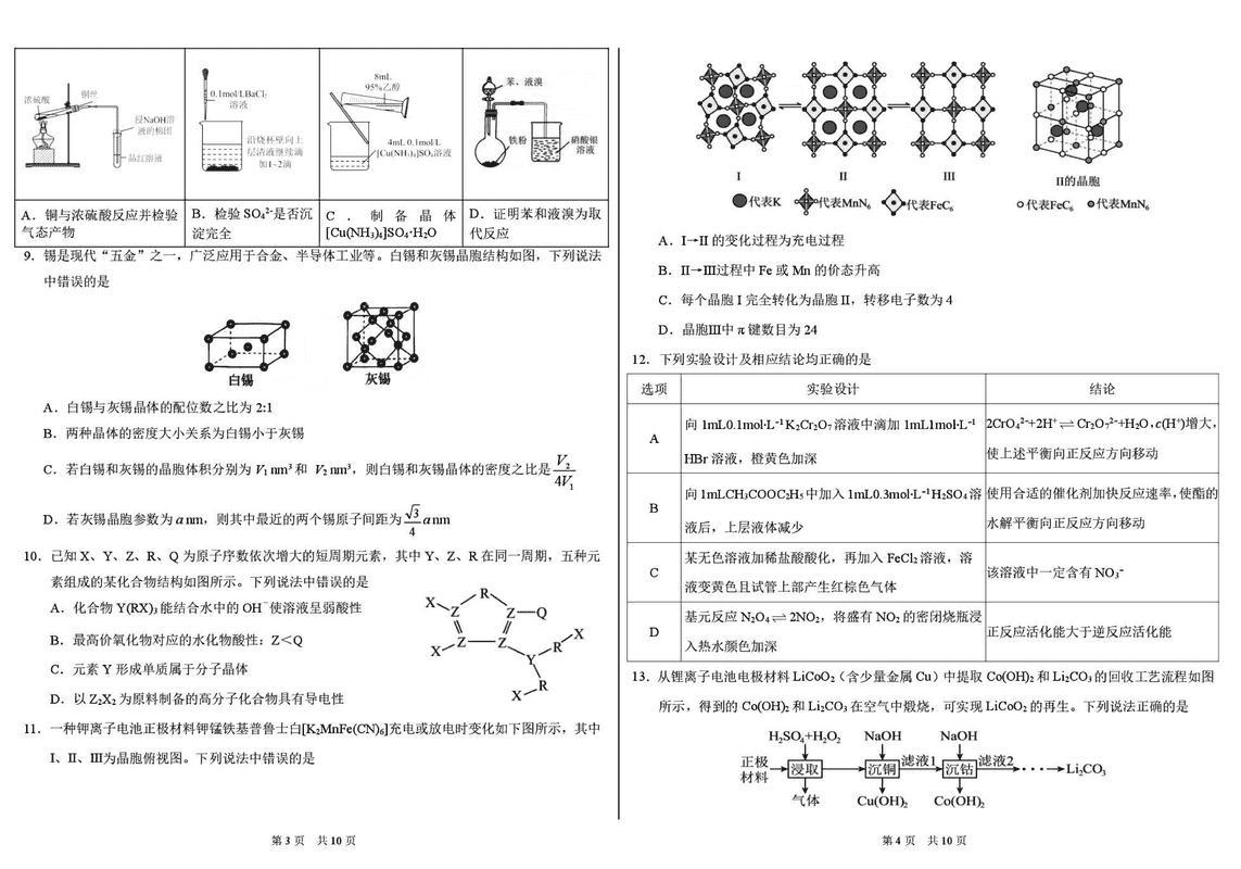 TDA2025年2月标准学术能力诊断性测试化学试题及答案