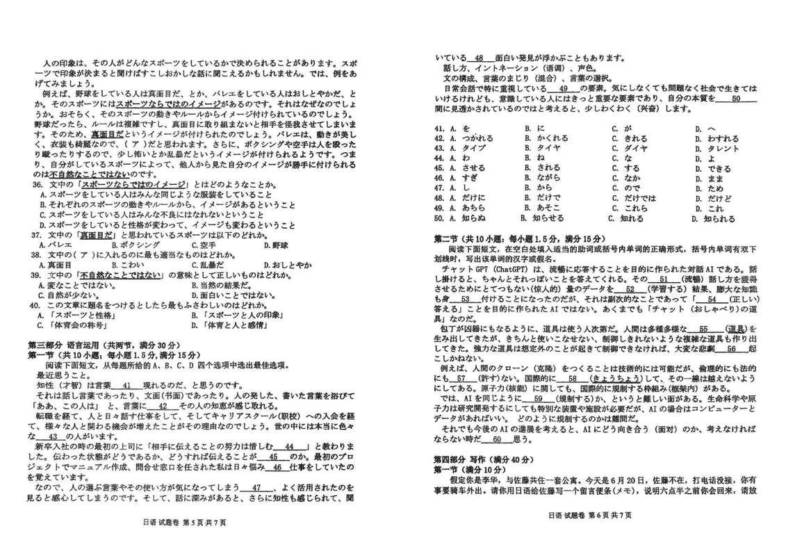 2025届河南省天一大联考高三3月春季模拟检测日语试题及答案