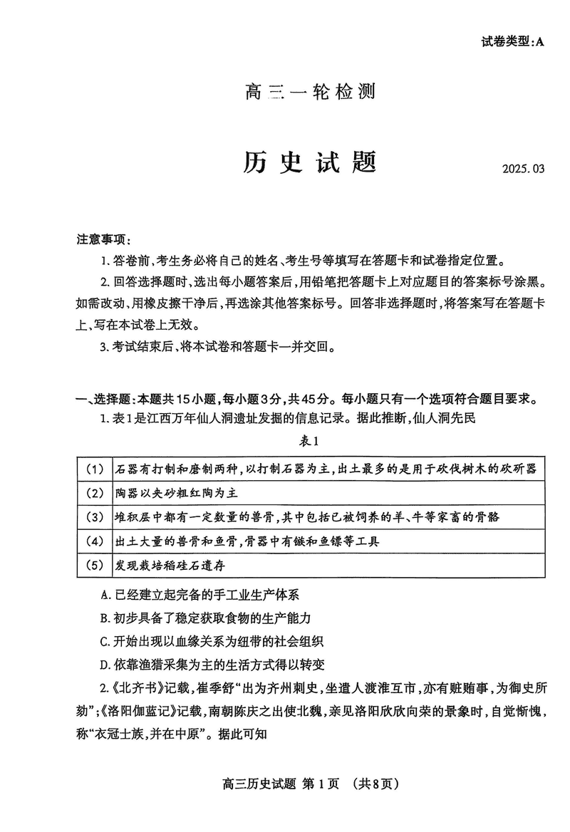 泰安一模2025届高三一轮检测历史试题及答案 时间:2025-03-09 山东 文综试题 泰安一模2025届高三一轮检测历史考试已于近日开考,为方便考生考后及时查看考试情况,查漏补缺、弥补不足,本文整理了试题答案解析相关信息! 汇总:泰安一模2025届高三一轮检测试题及答案汇总 历史试题及答案解析