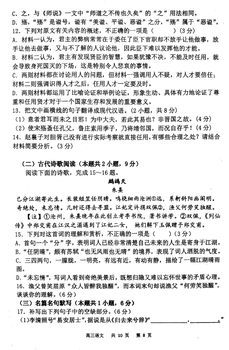 语文试题及答案解析