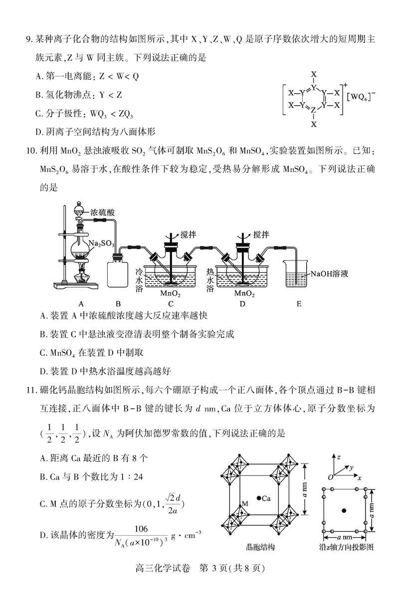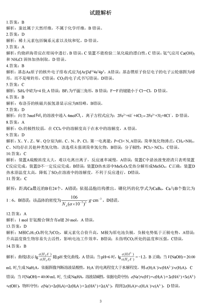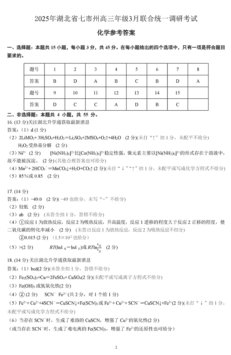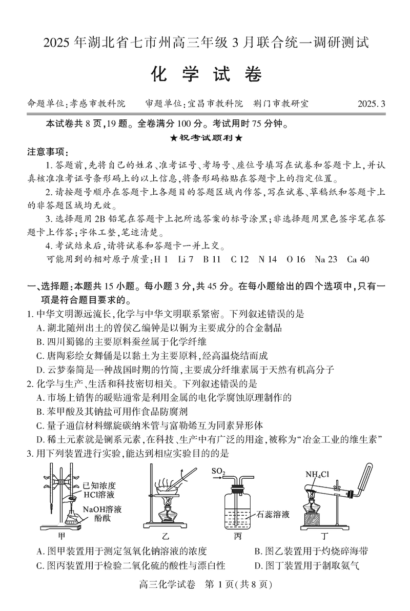 2025年湖北省七市州高三3月联合统一调研测试化学考试已于近日开考,为方便考生考后及时查看考试情况,查漏补缺、弥补不足,本文整理了试题答案解析相关信息!