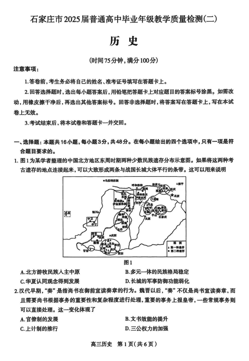 2025届石家庄市高三质检(二)历史考试已于近日开考,为方便考生考后及时查看考试情况,查漏补缺、弥补不足,本文整理了试题答案解析相关信息!