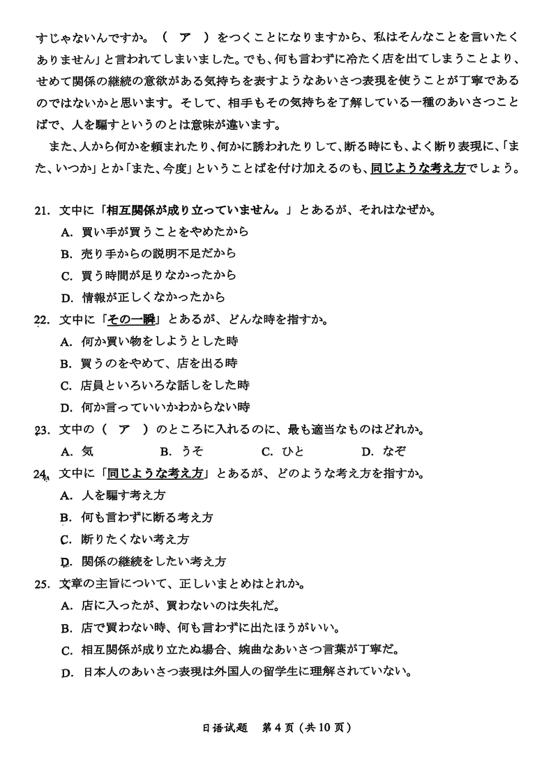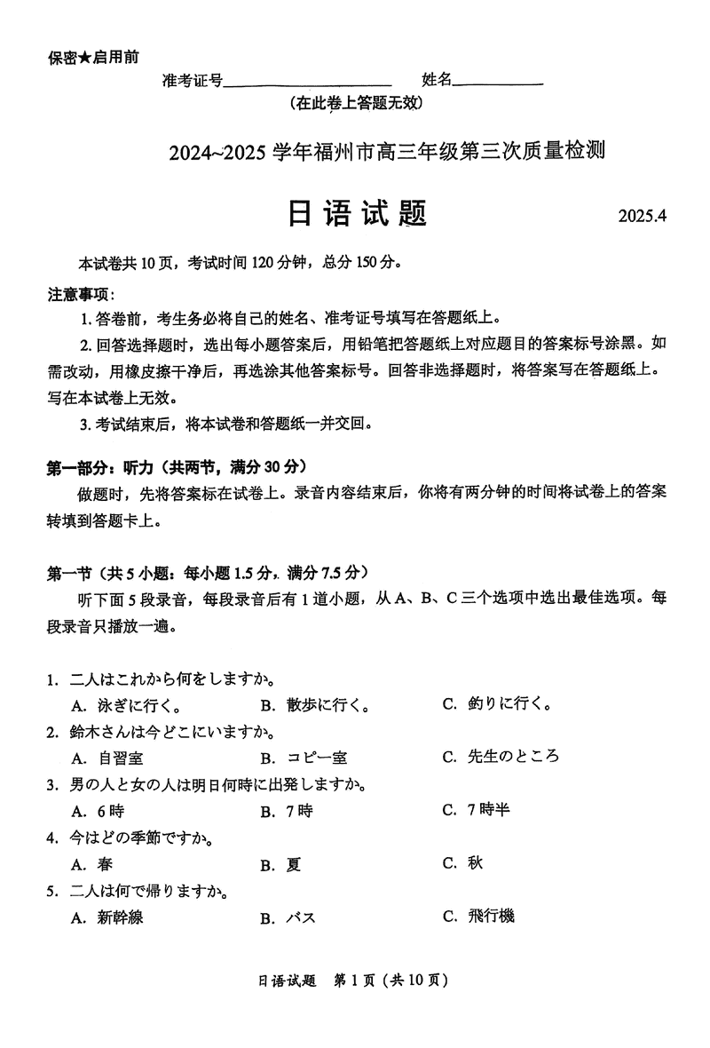 福建2025年4月高三九市联考日语试题及答案 时间:2025-04-12 福建 英语试题 福建2025年4月高三九市联考日语考试已于近日开考,为方便考生考后及时查看考试情况,查漏补缺、弥补不足,本文整理了试题答案解析相关信息! 汇总:福建2025年4月高三九市联考试题及答案汇总 日语试题及答案解析