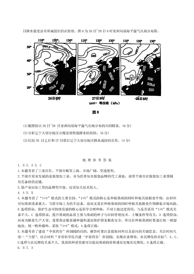 地理试题及答案解析