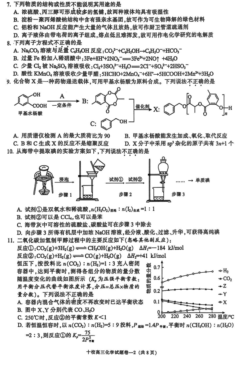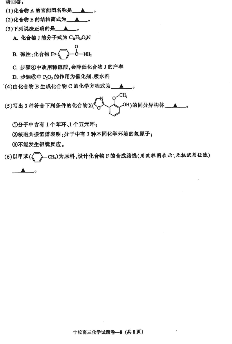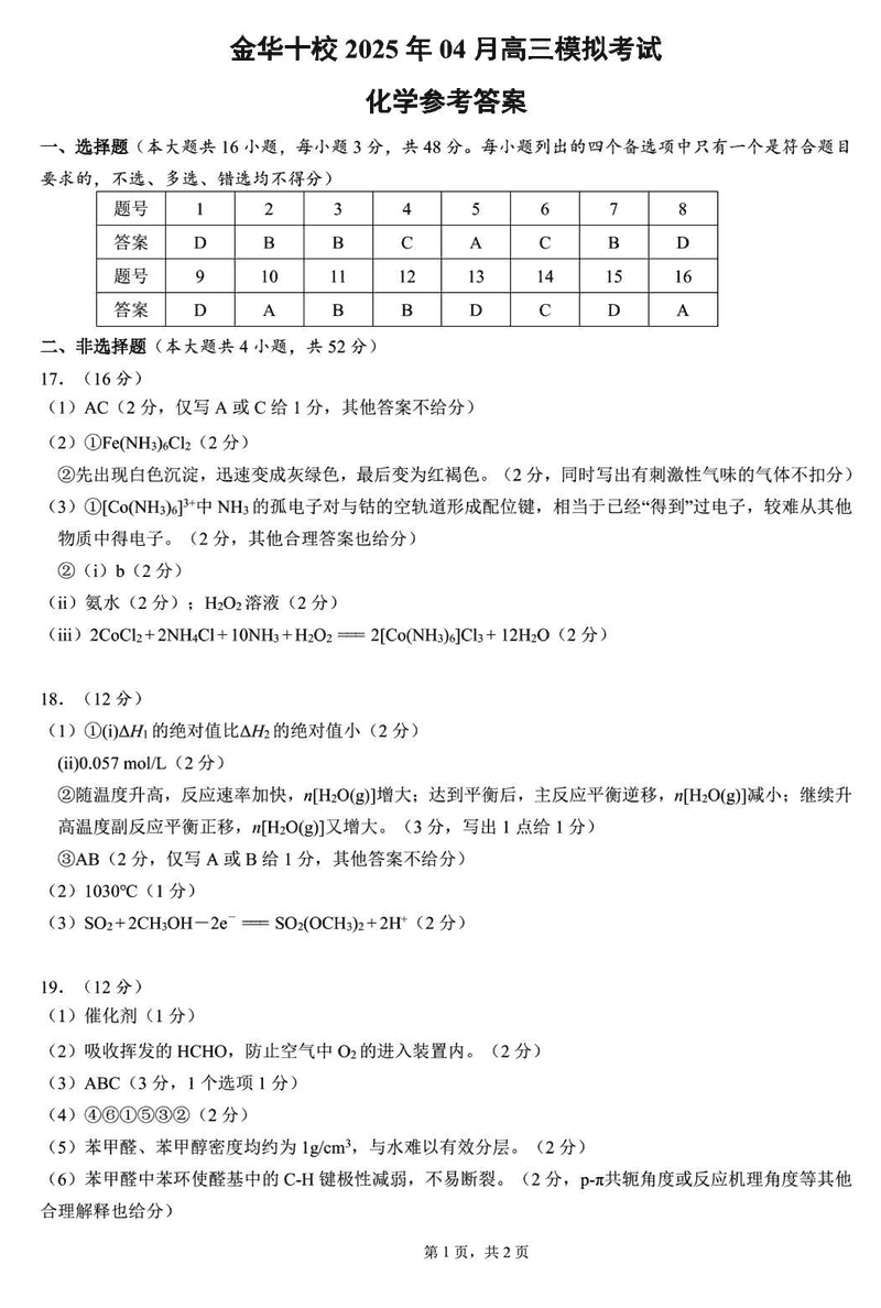 浙江省金华十校2025年4月高三模考化学考试已于近日开考,为方便考生考后及时查看考试情况,查漏补缺、弥补不足,本文整理了试题答案解析相关信息!