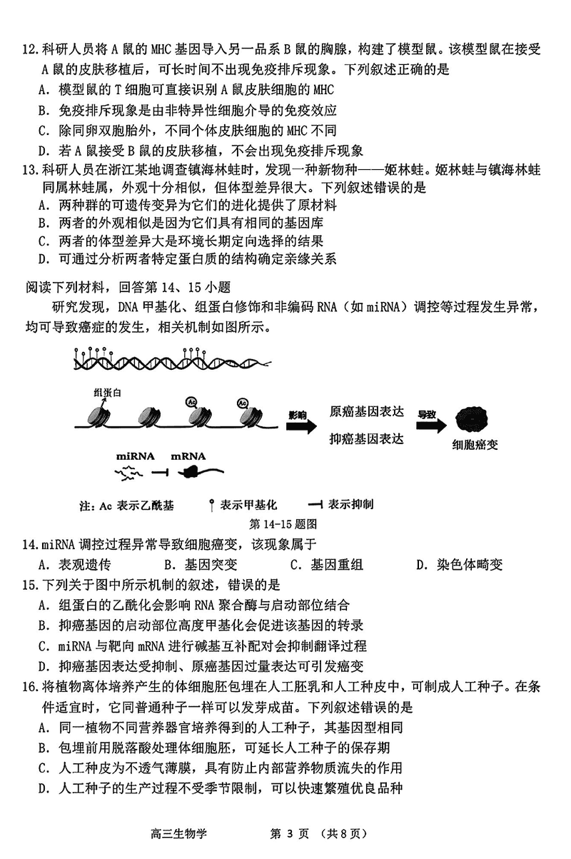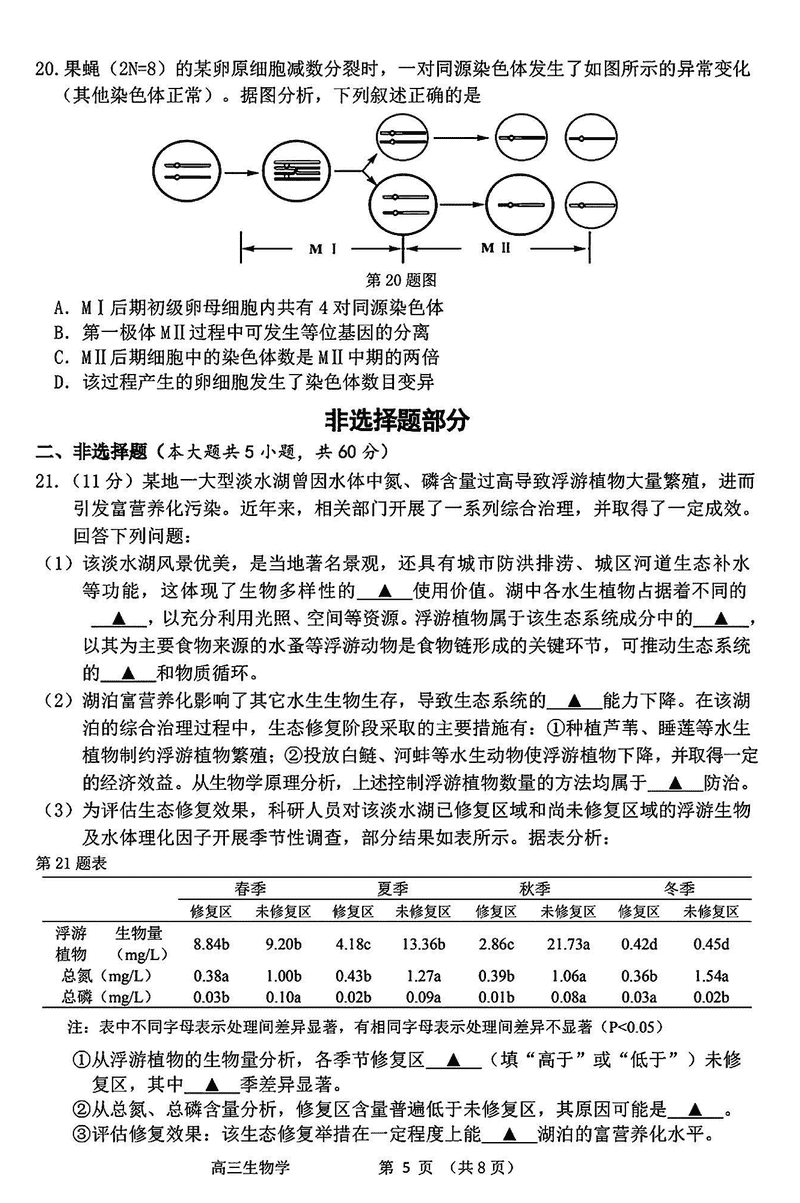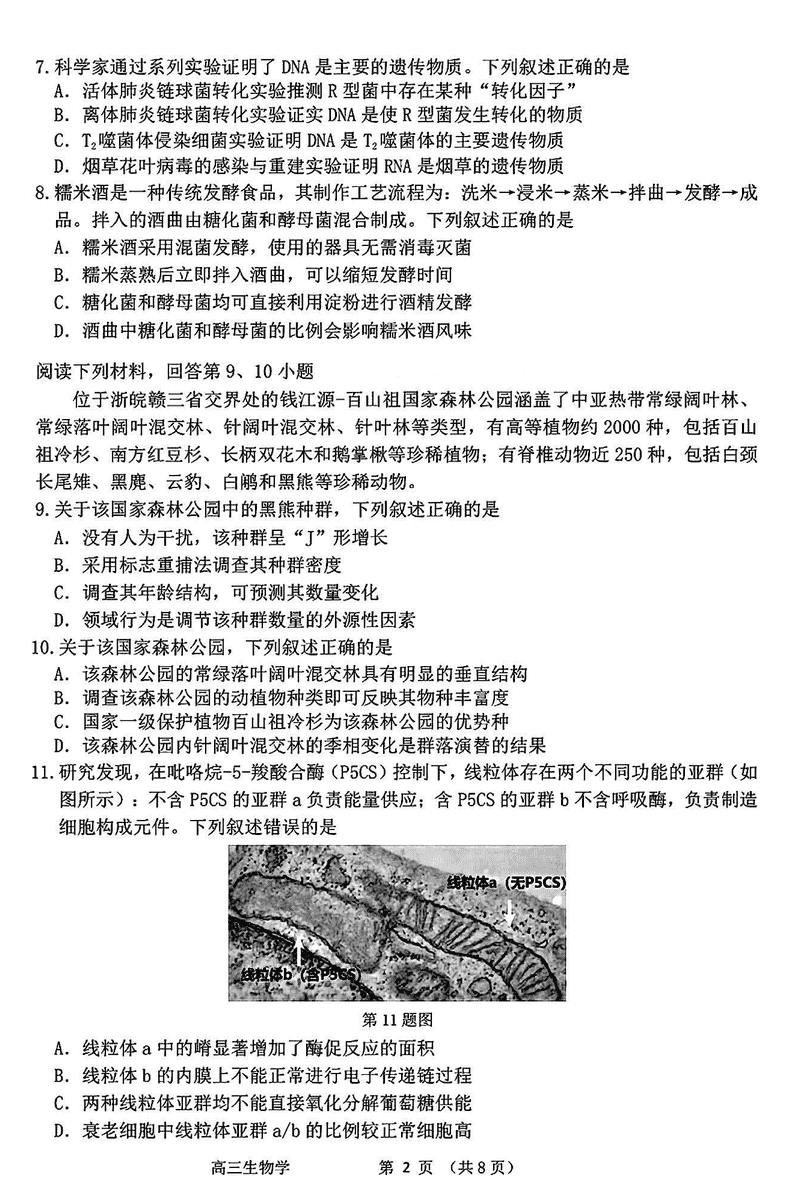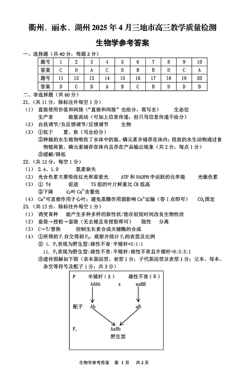 衢州、丽水、湖州三地市二模2025年4月高三教学质检生物考试已于近日开考,为方便考生考后及时查看考试情况,查漏补缺、弥补不足,本文整理了试题答案解析相关信息!