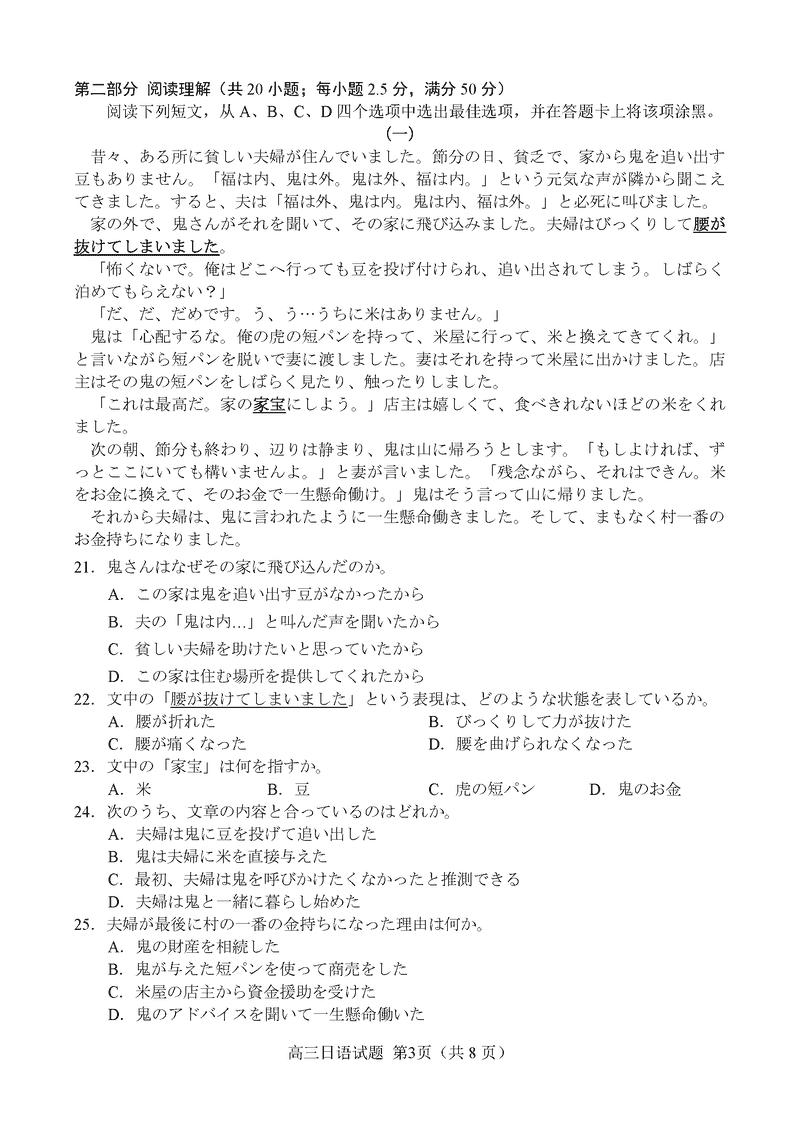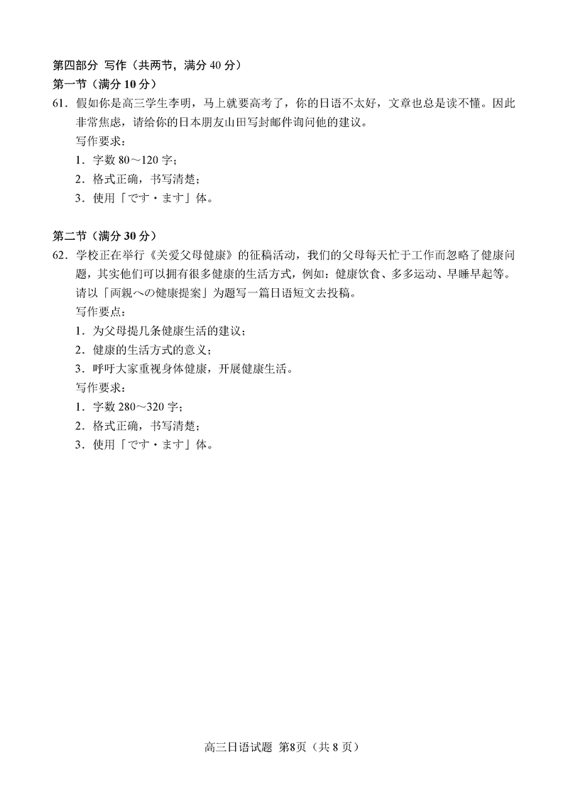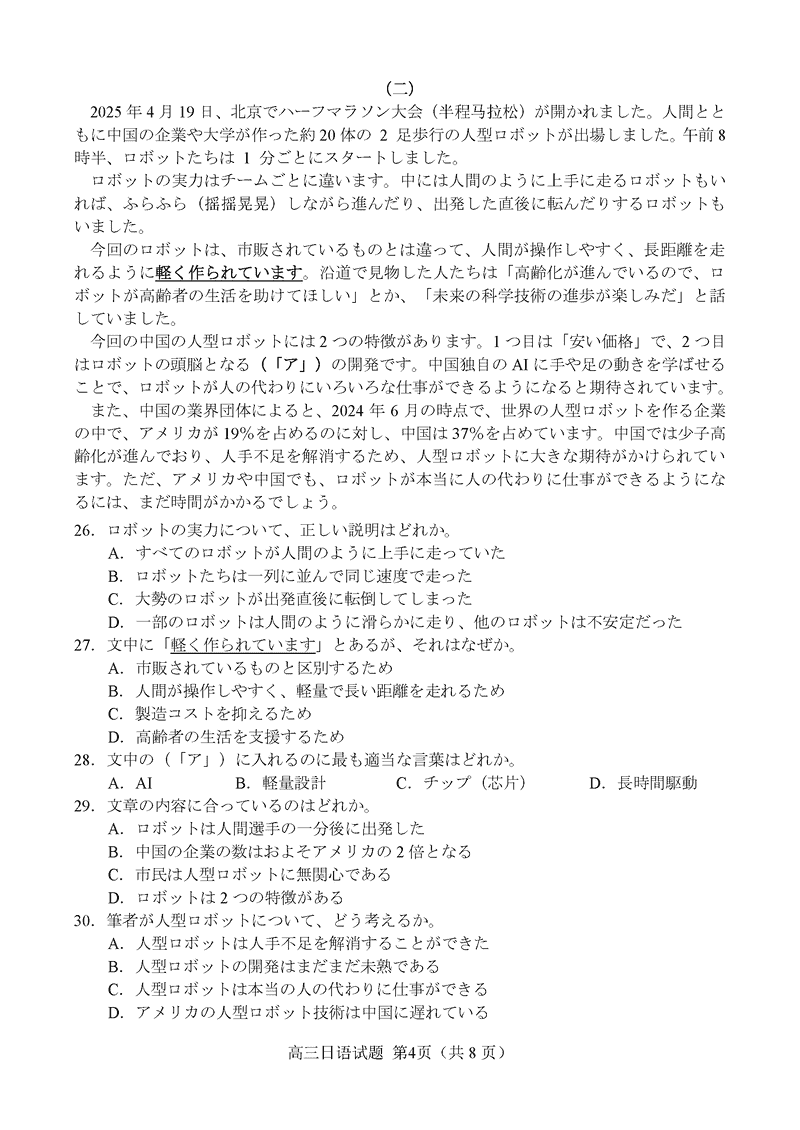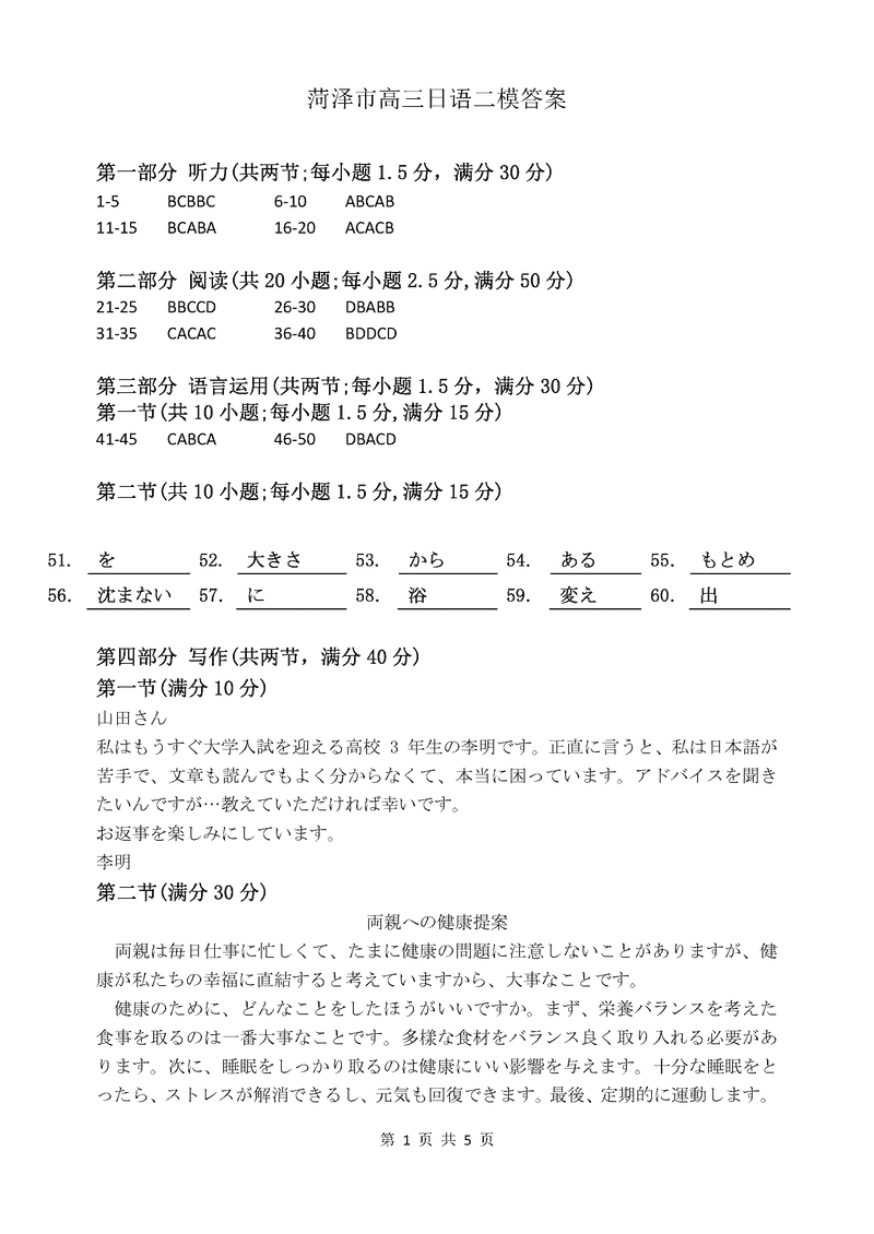 山东省菏泽市2025年高三二模日语试题及答案 时间:2025-05-11 山东 英语试题 山东省菏泽市2025年高三二模日语考试已于近日开考,为方便考生考后及时查看考试情况,查漏补缺、弥补不足,本文整理了试题答案解析相关信息! 汇总:山东省菏泽市2025年高三二模考试试题及答案汇总 日语试题及答案解析