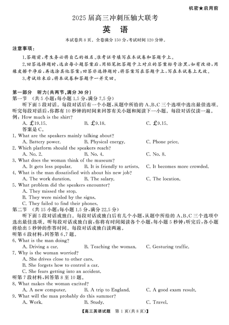 2025届湖南高三天壹冲刺压轴大联考英语试题及答案 时间:2025-05-30 湖南 英语试题 2025届湖南高三天壹冲刺压轴大联考英语考试已于近日开考,为方便考生考后及时查看考试情况,查漏补缺、弥补不足,本文整理了试题答案解析相关信息! 汇总:2025届湖南高三天壹冲刺压轴大联考试题及答案汇总 英语试题及答案解析