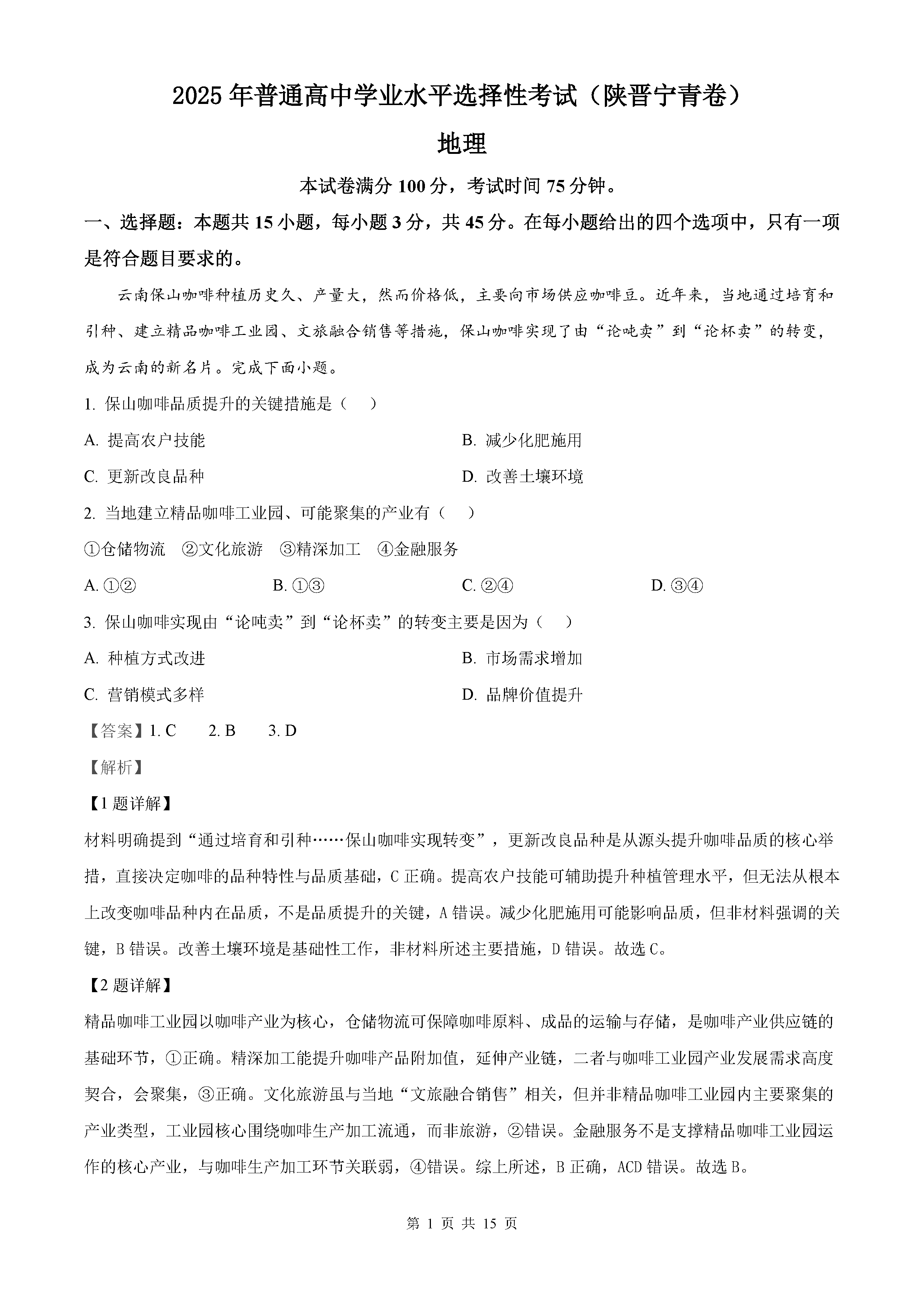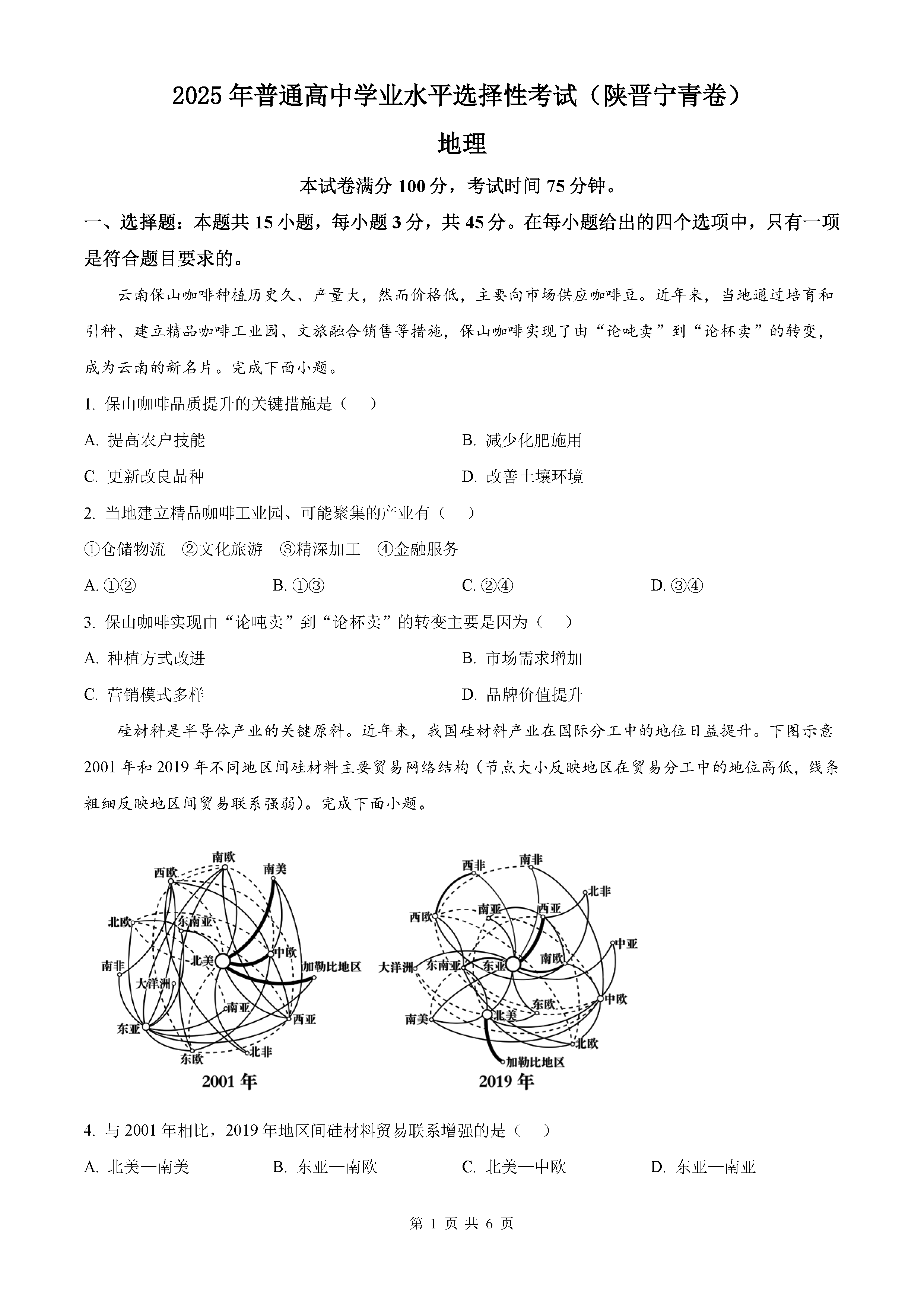 2025年陕西青海山西宁夏四省高考地理试题及答案解析