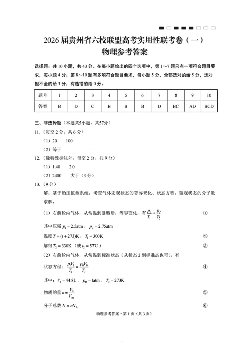 2026届贵州省六校联盟高考实用性联考卷(一)物理考试已于近日开考,为方便考生考后及时查看考试情况,查漏补缺、弥补不足,本文整理了试题答案解析相关信息!