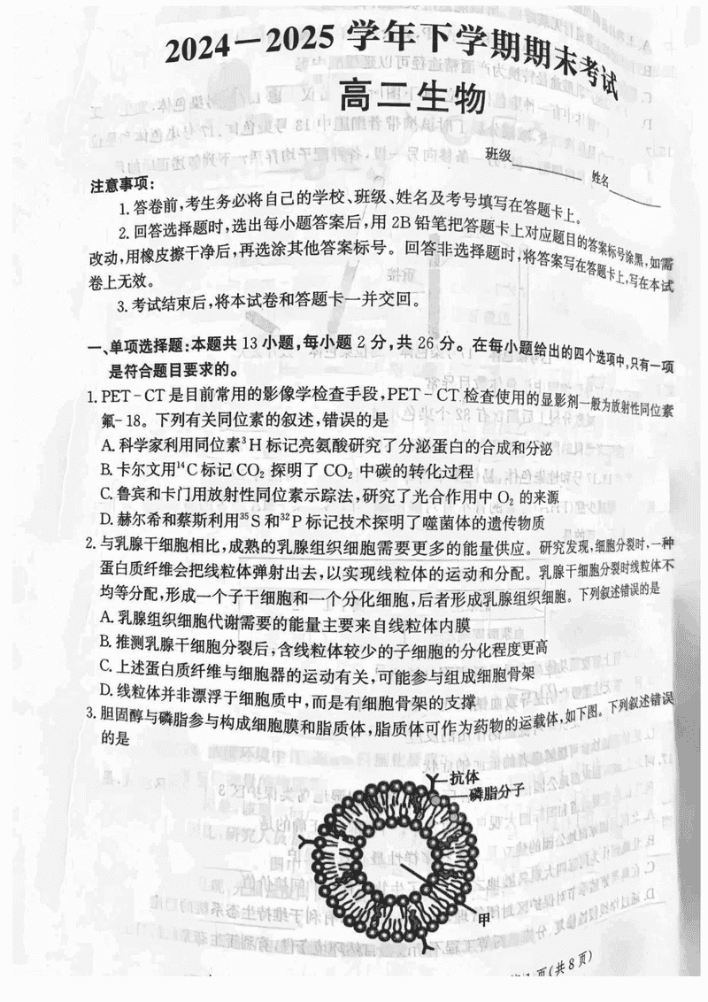 河北省级联测2024-2025学年高二下学期6月期末生物试题及答案 时间:2025-06-22 河北 高中生物 河北省省级联测2024-2025学年高二下学期6月期末生物考试已于近日开考,为方便考生考后及时查看考试情况,查漏补缺、弥补不足,本文整理了试题答案解析相关信息! 生物试题及答案解析