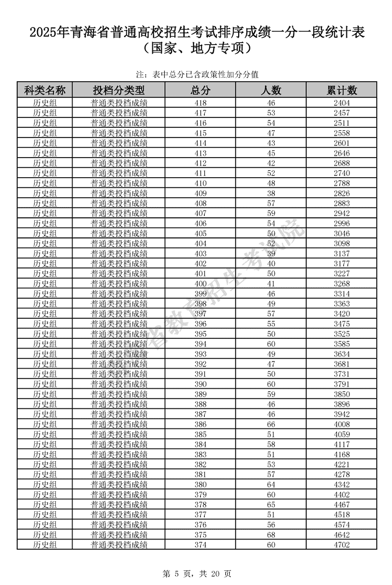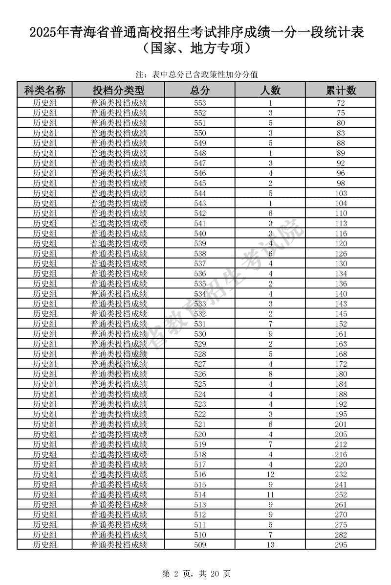 2025青海高考一分一段表最新出炉 历史类成绩分布表