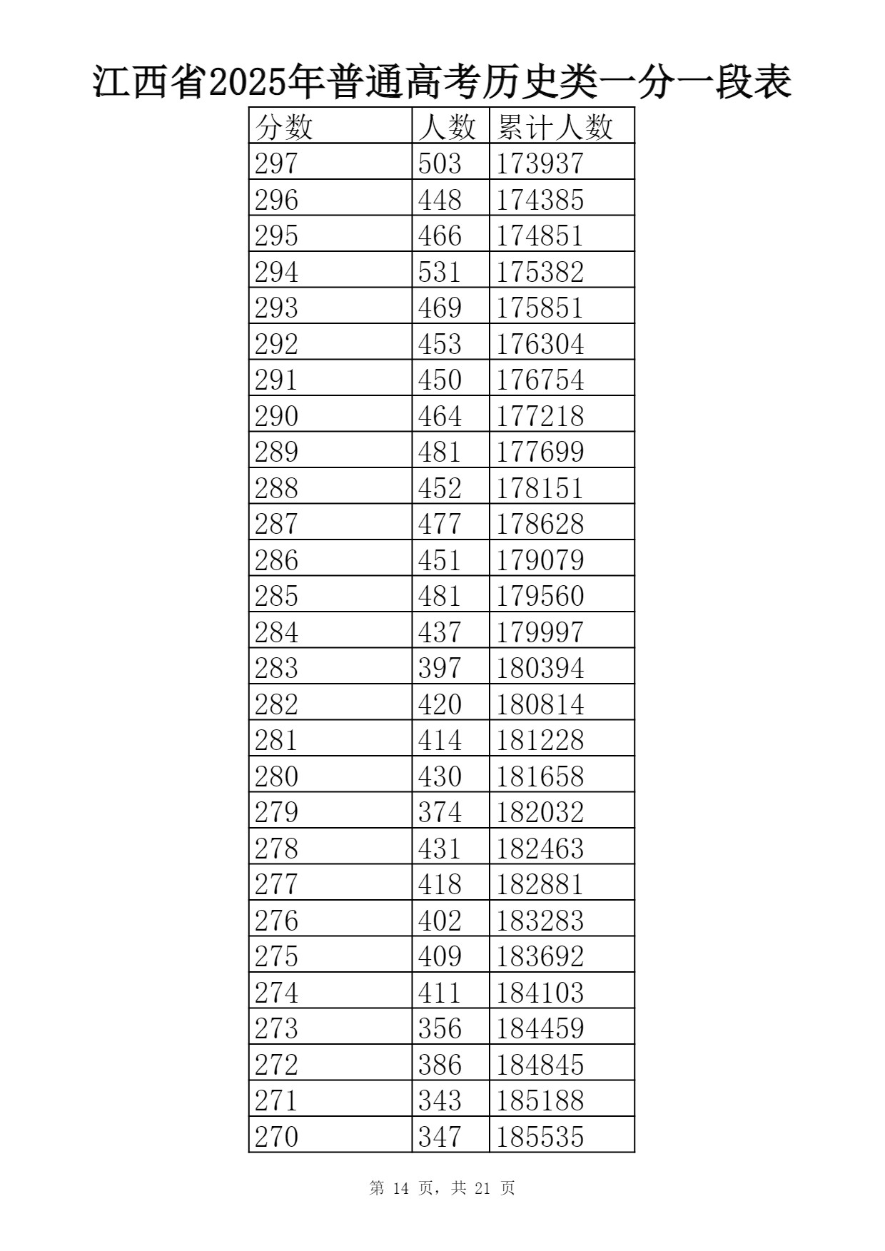 2025江西历史类高考一分一段表