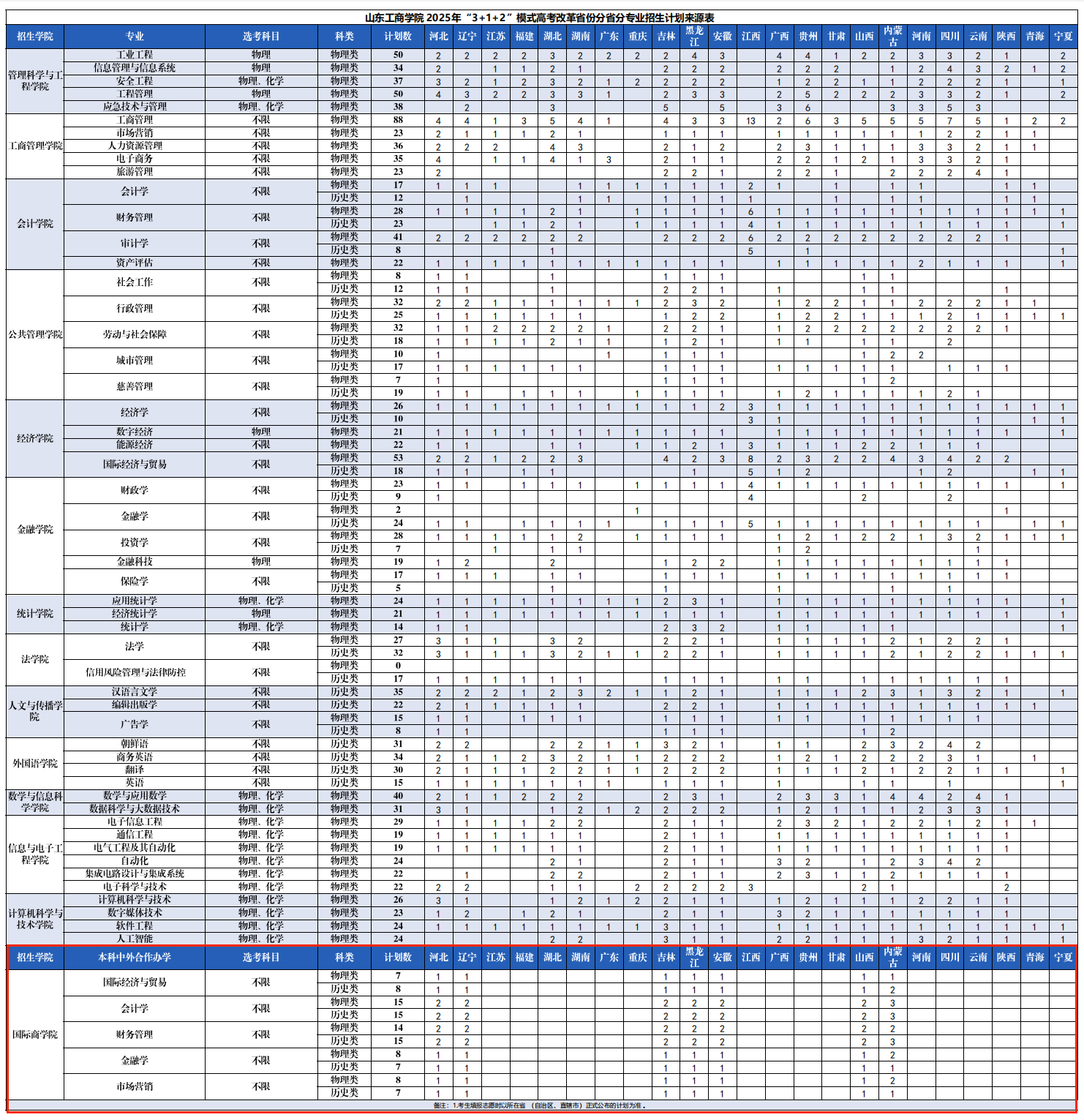 2025山东工商学院中外合作办学招生计划及各专业招生人数