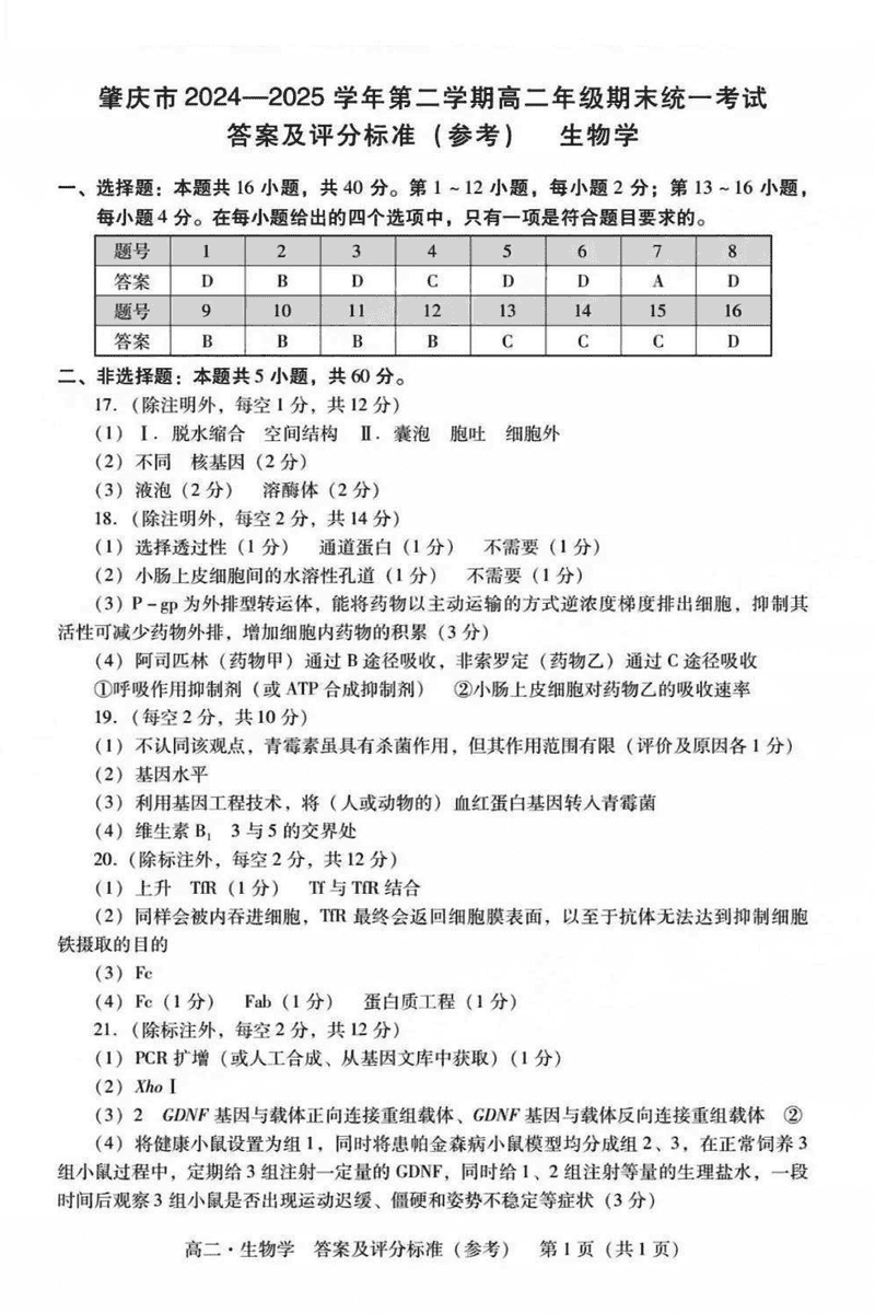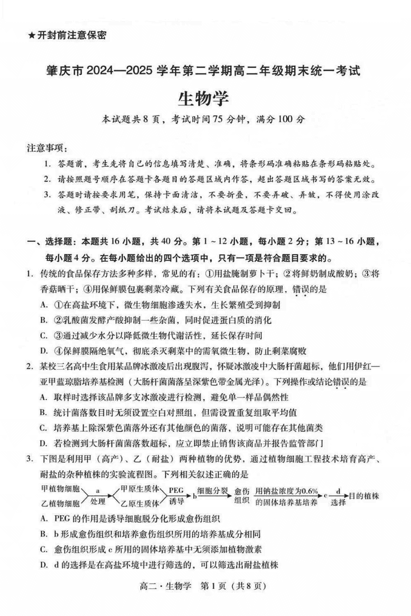 肇庆市2024-2025学年高二下学期期末生物试题及答案 时间:2025-07-10 广东 高中生物 广东省肇庆市2024-2025学年高二下学期期末生物考试已于近日开考,为方便考生考后及时查看考试情况,查漏补缺、弥补不足,本文整理了试题答案解析相关信息! 生物试题及答案解析