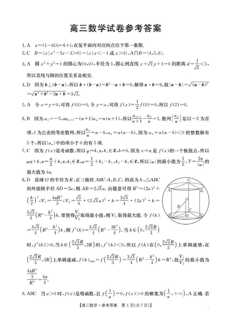 江西金太阳2025-2026学年高三上学期9月联考数学试题及答案