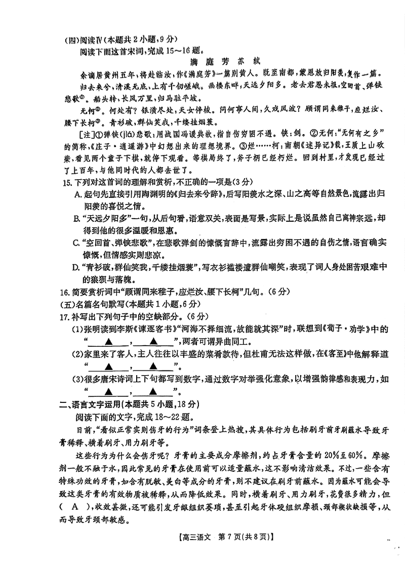 江西金太阳2025-2026学年高三上学期9月联考语文试题及答案