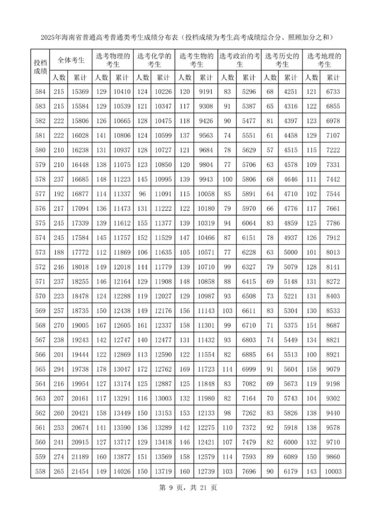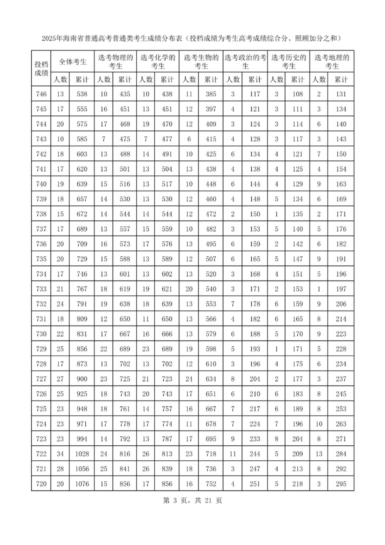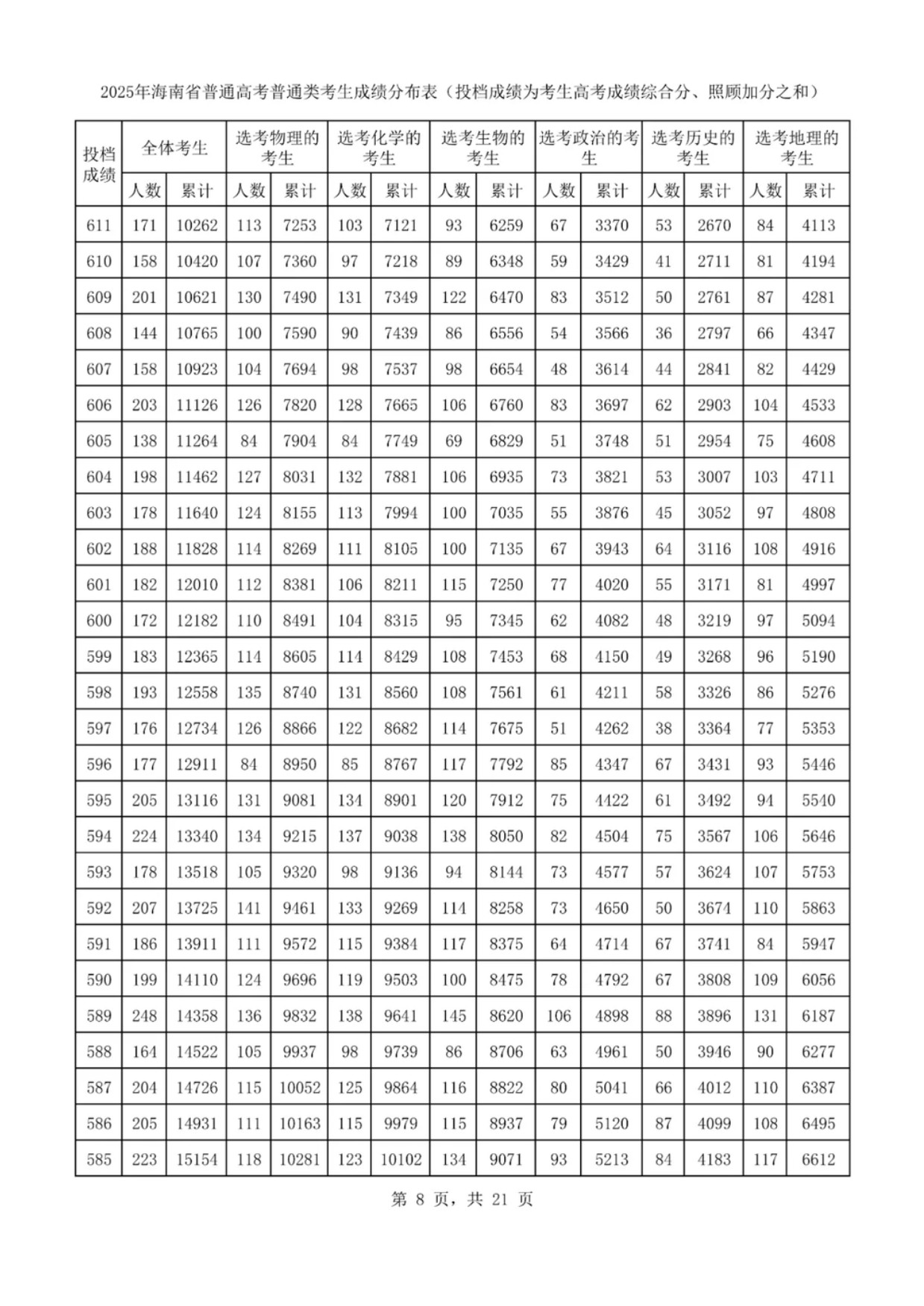 海南高考一分一段表2025