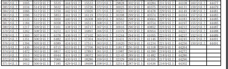 | 批次 | 分数 | 排名 | 科类 |