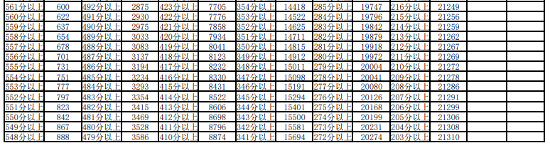 宁夏物理类一分一段表