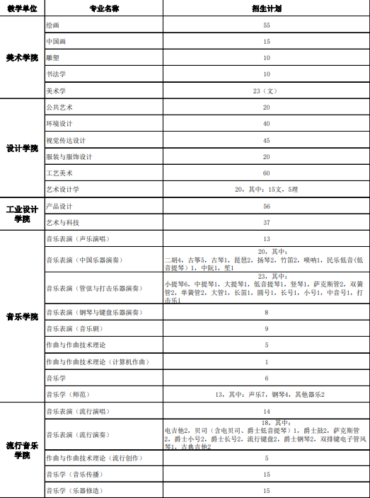 南京艺术学院省外招生计划