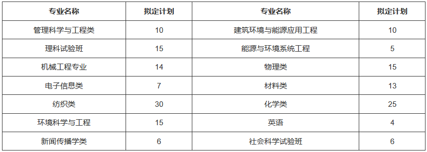 东华大学2021年高校专项计划招生计划及专业 有哪些专业